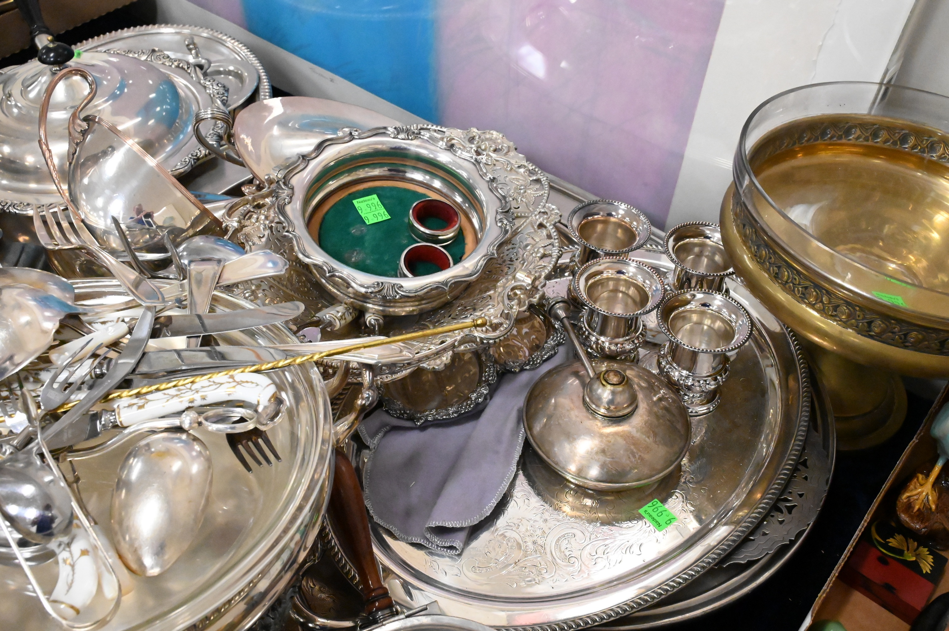 to include Reed and Barton, Christofle, Sheffield platters, candlesticks, gravy boats, utensils, tureens, etc.