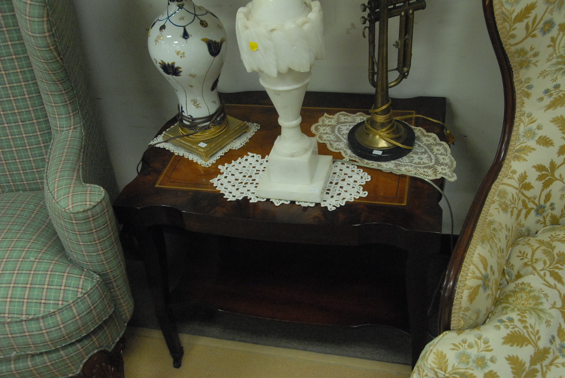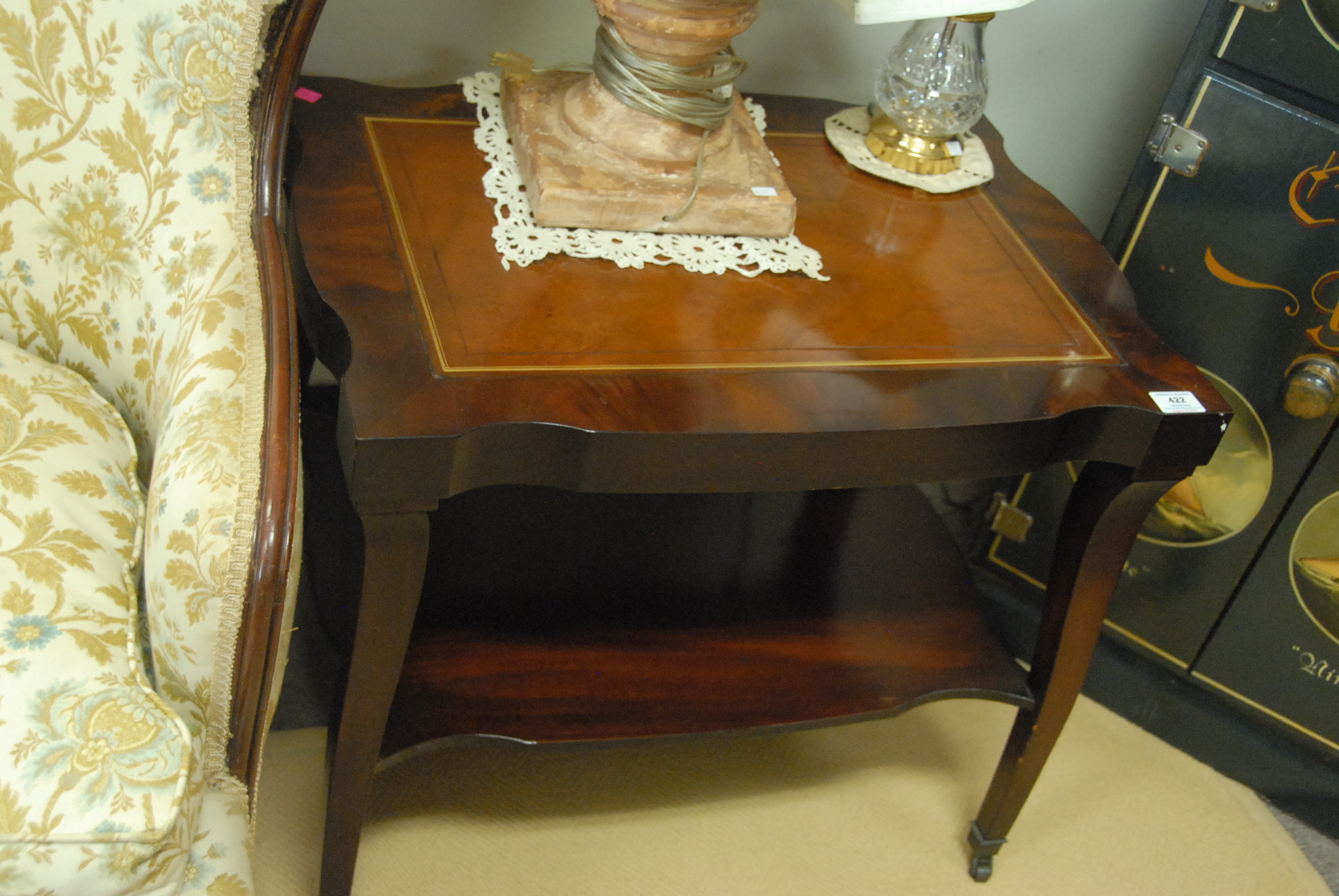 Lot 422: Pair of mahogany leather top side tables, ht. 23, wd. 27.