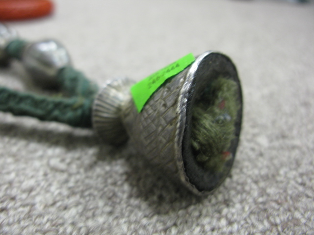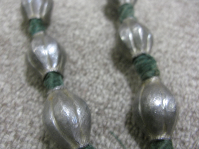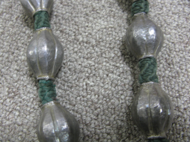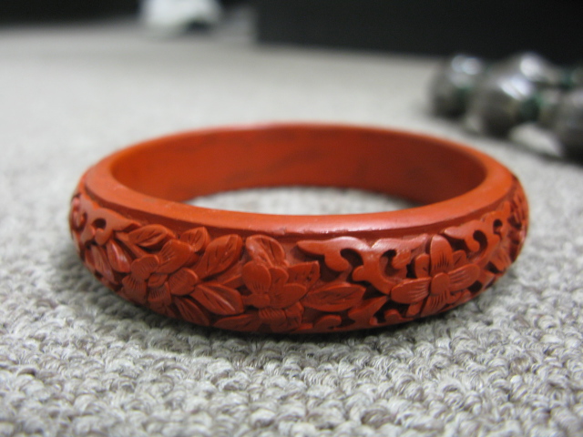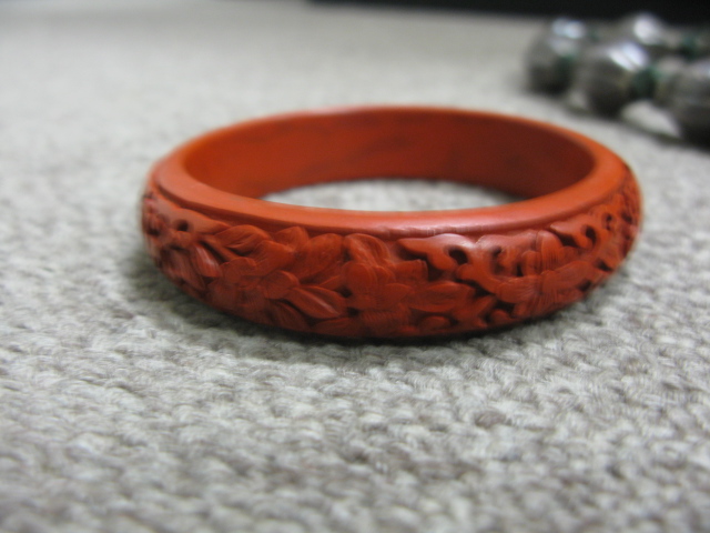 Rope necklace mounted with silver and two cinnabar bracelets