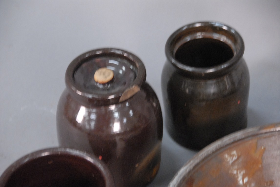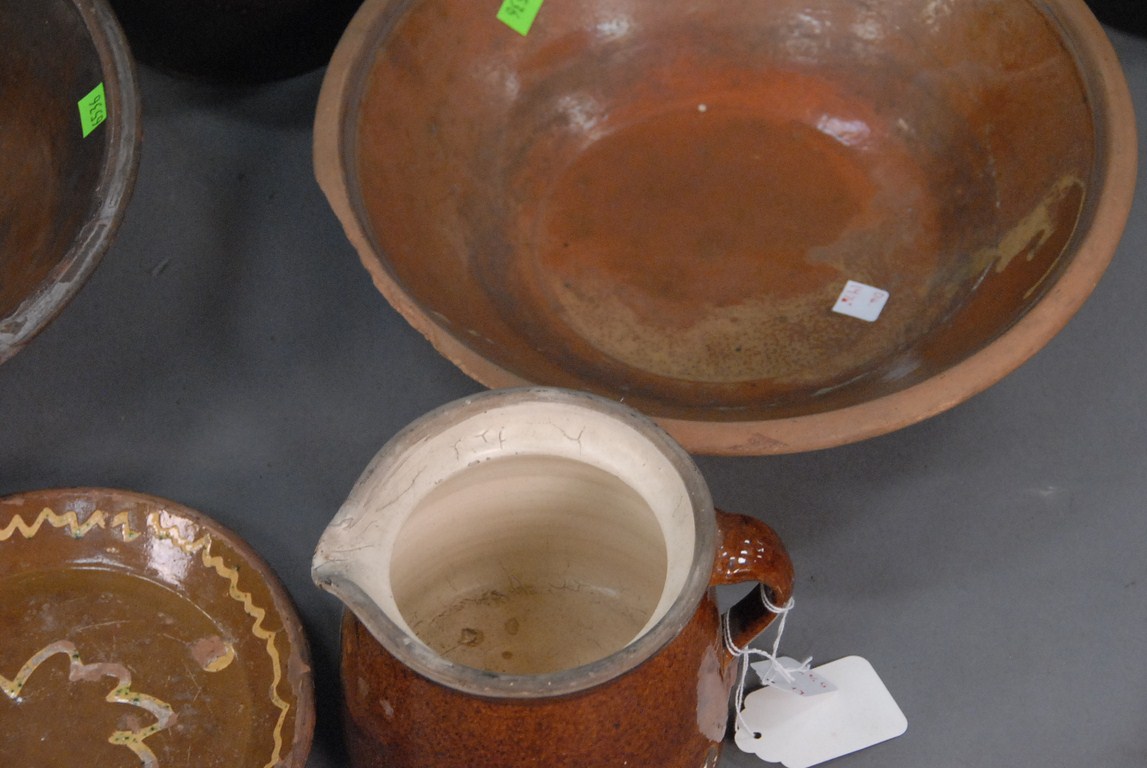 Ten piece lot of brownware, redware, crocks, bowls, and pitchers. Being sold to benefit a Connecticut Museum