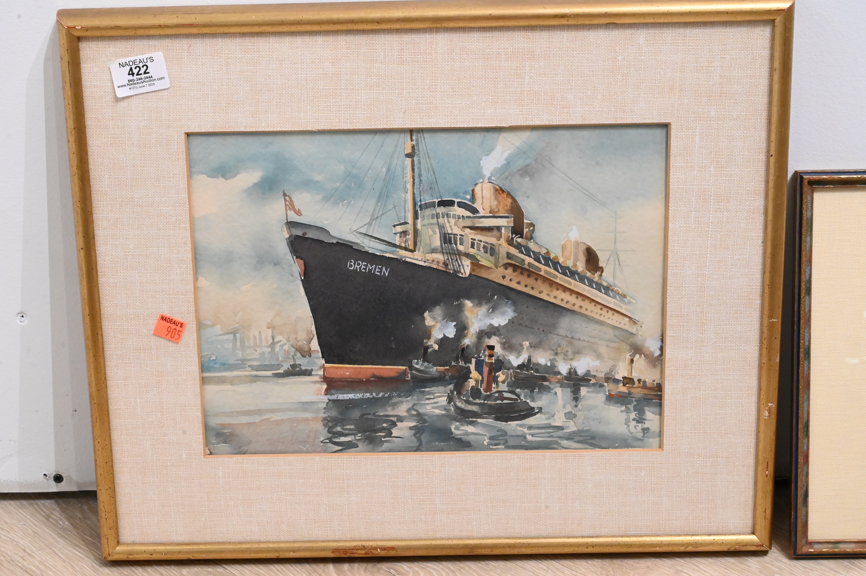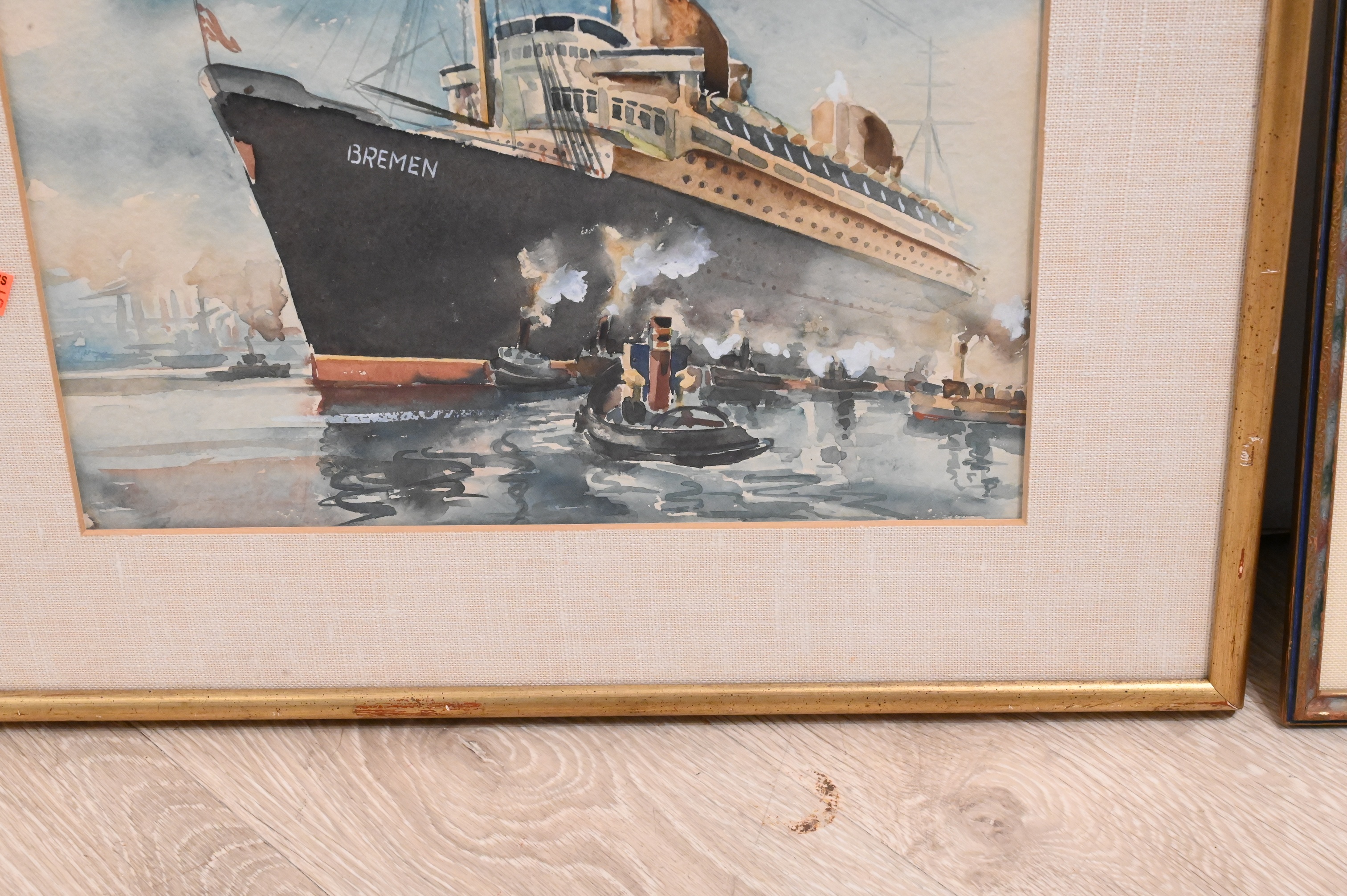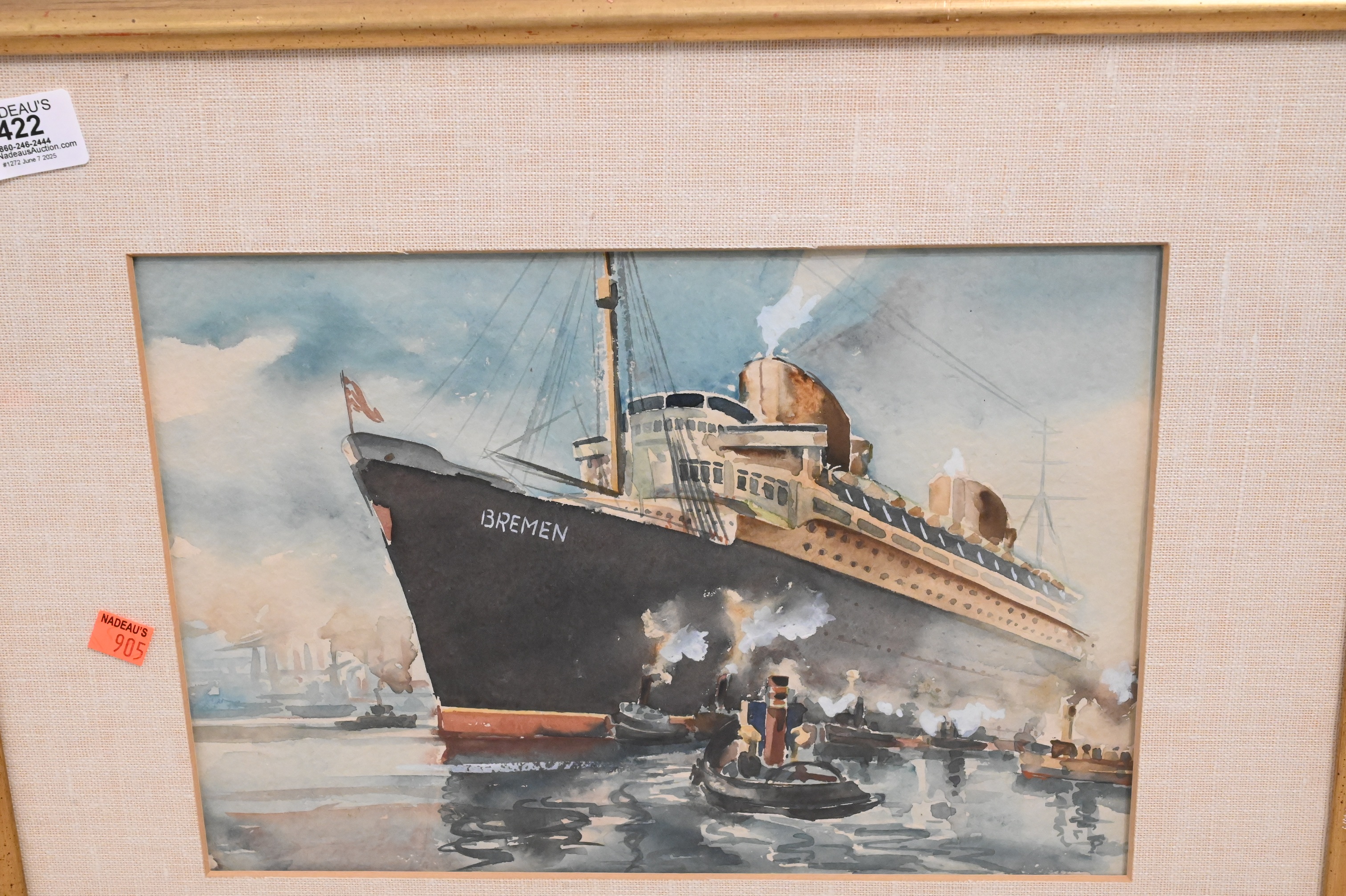 S.S.Bremen Ocean Liner waving a flag coming to harbor