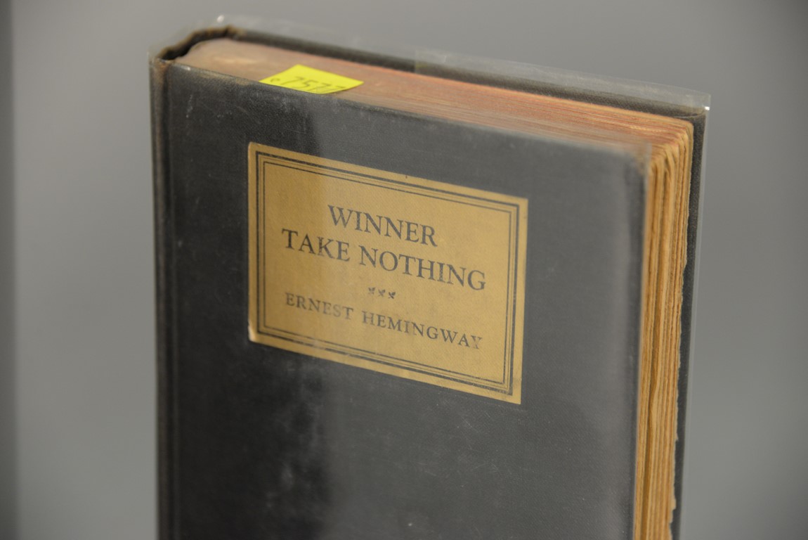 Lot 422: Two piece book lot including Ernest Hemingway Men at War, The Best War Stories of All Time first edition, Crown Publishers New York and Ernest Hemingway Winner Take Nothing first edition, Charles Scribner’s Sons New York, London 1933.