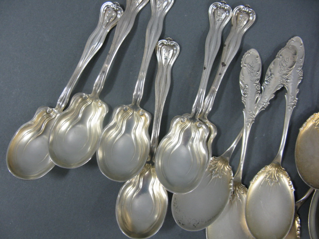 Two sets of sterling silver ice cream spoons, set of 12 and set of 6.