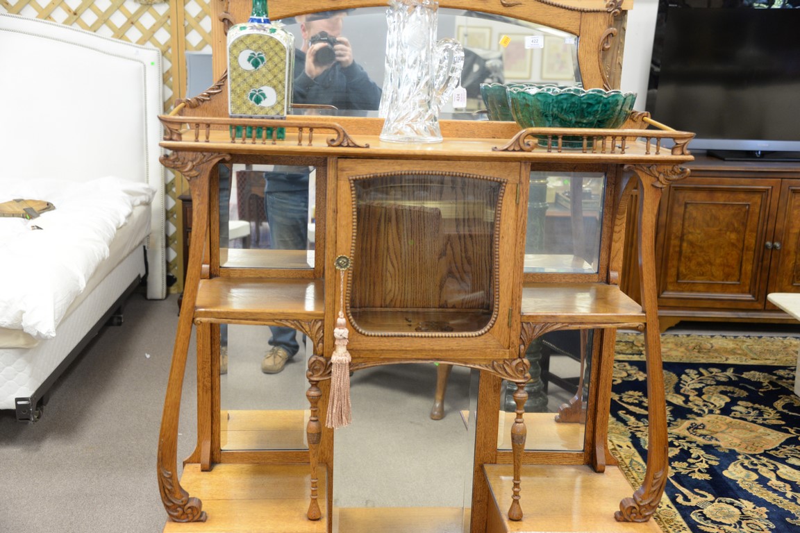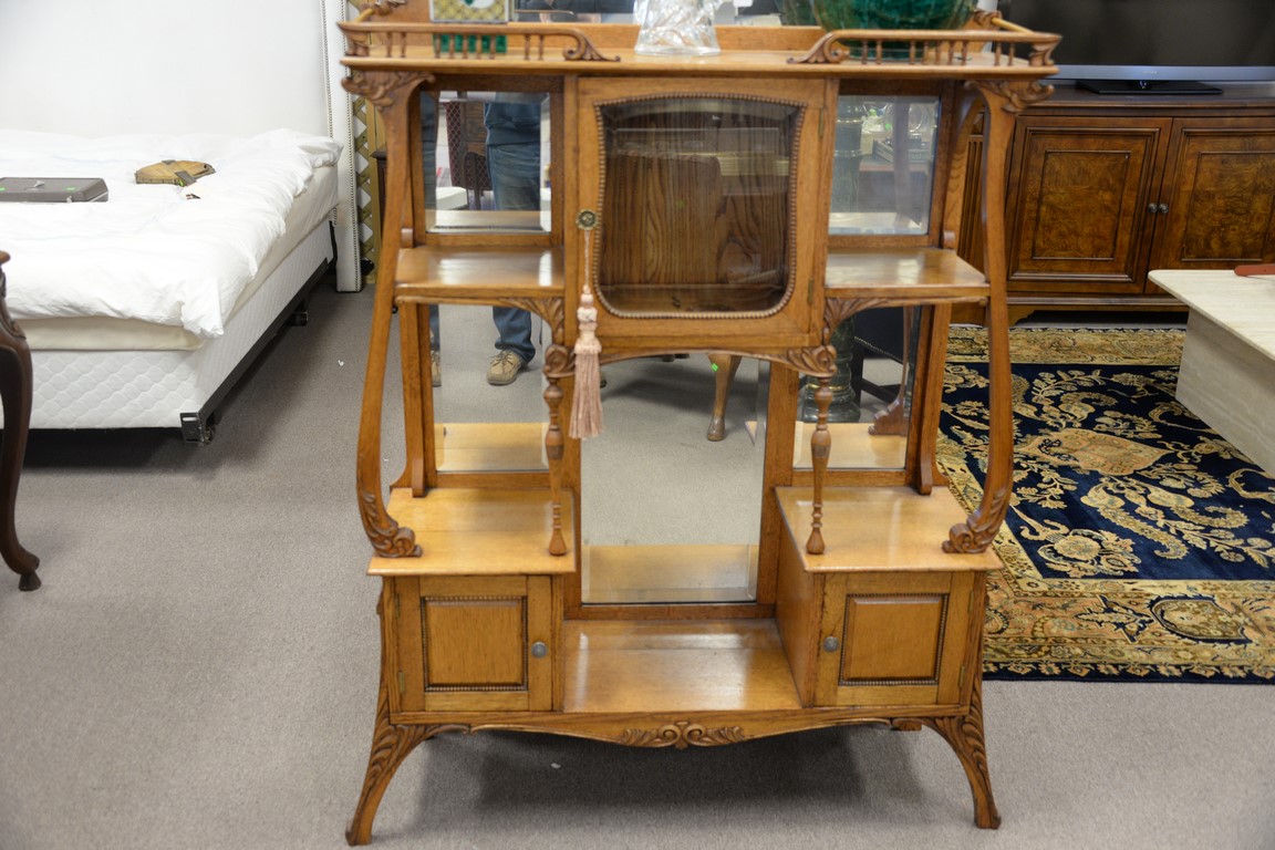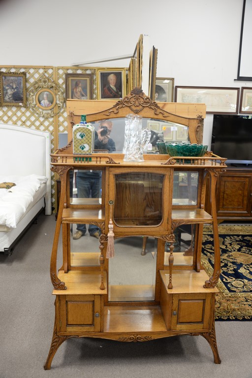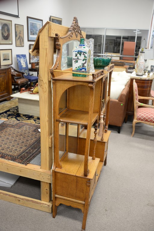 Victorian oak etagere, circa 1870. ht. 70in., wd. 40in., dp. 14in.