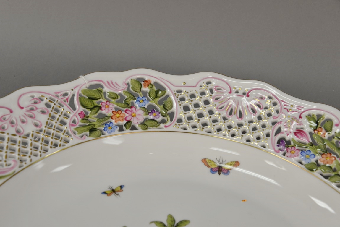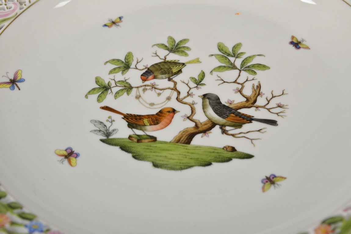 Lot 423: Herend Rothchild Bird hand painted pierced large platter, marked on bottom Herend Hungary