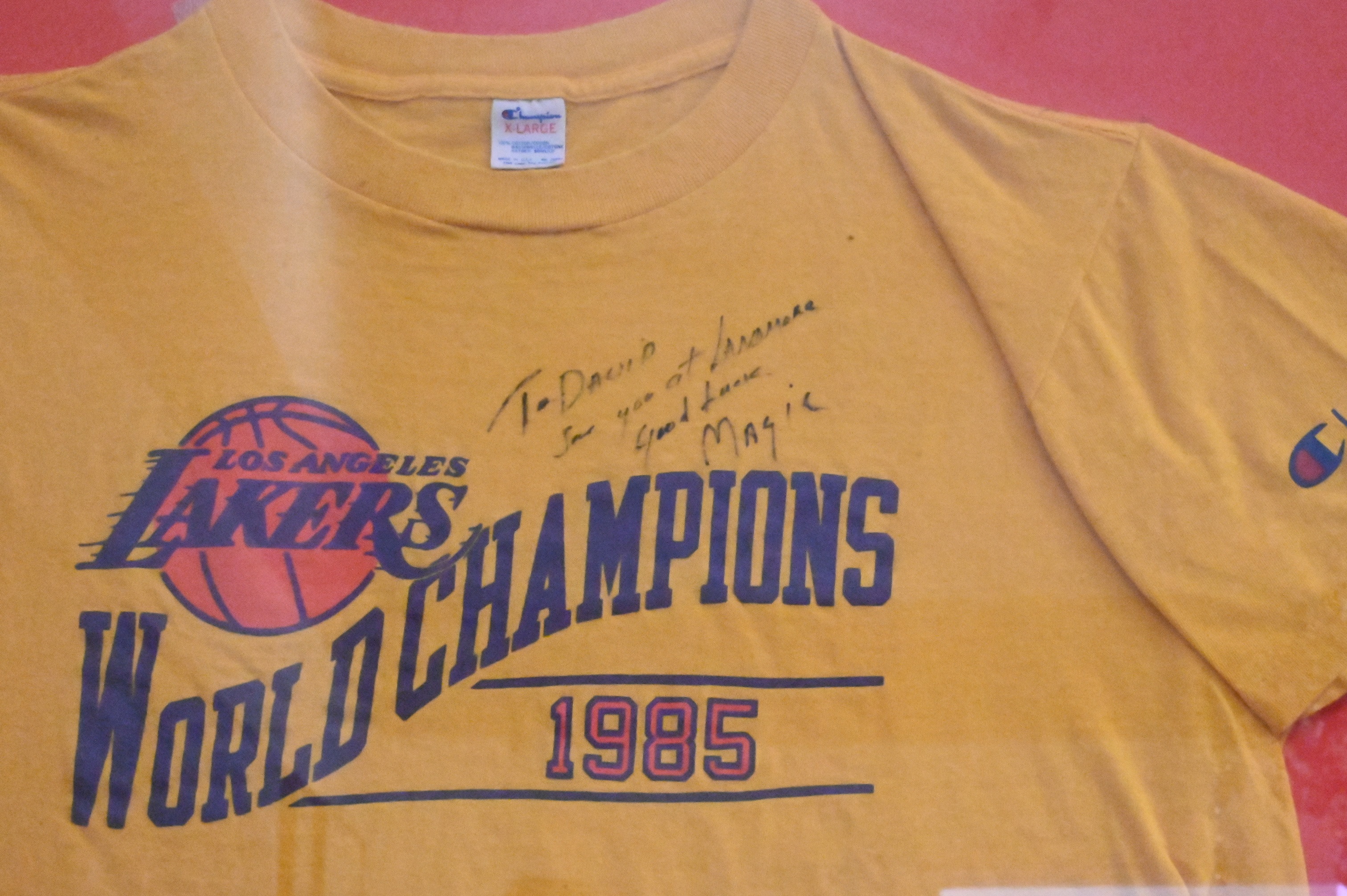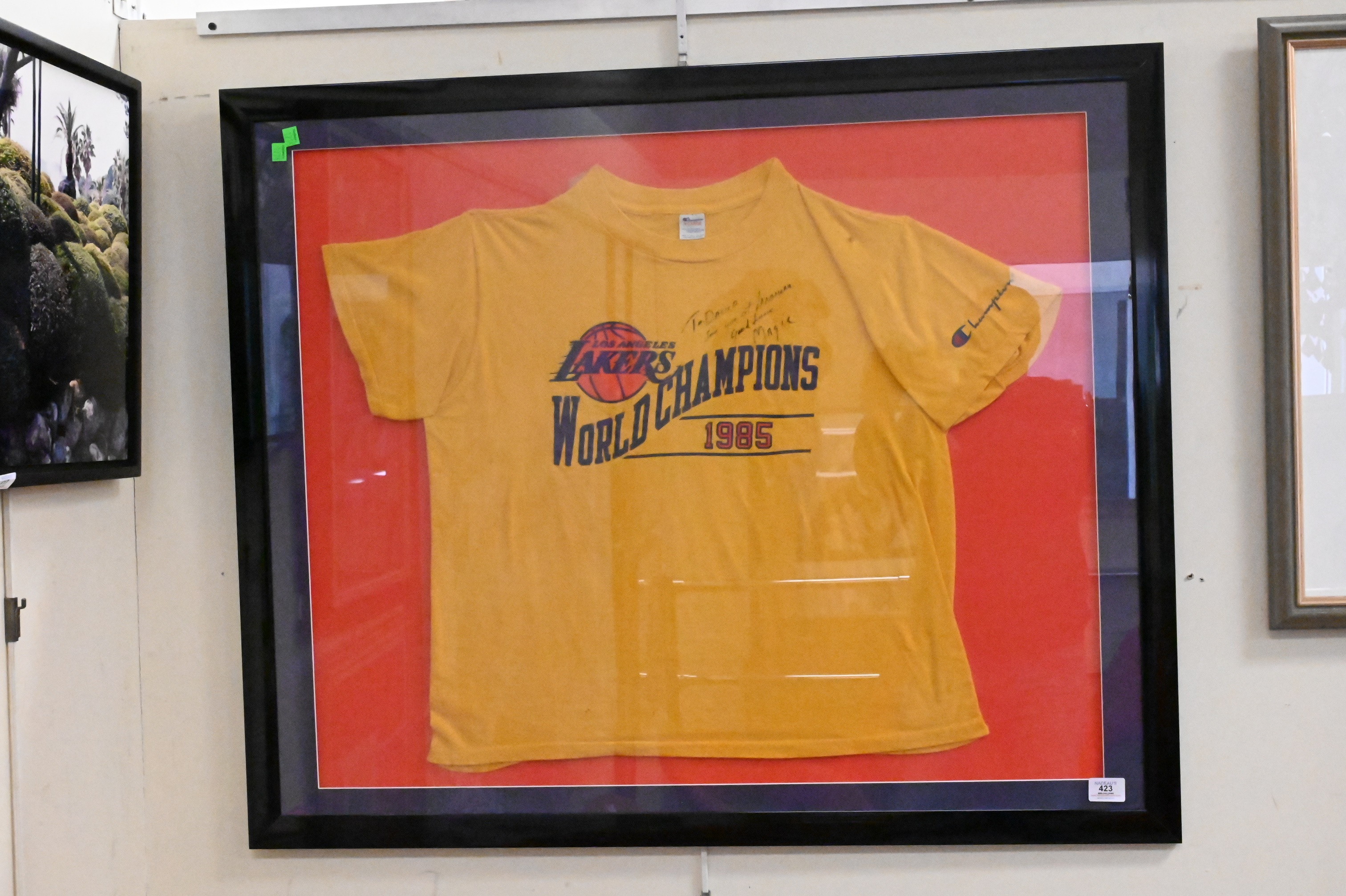 Lot 423: Magic Johnson Signed Lakers T-Shirt
