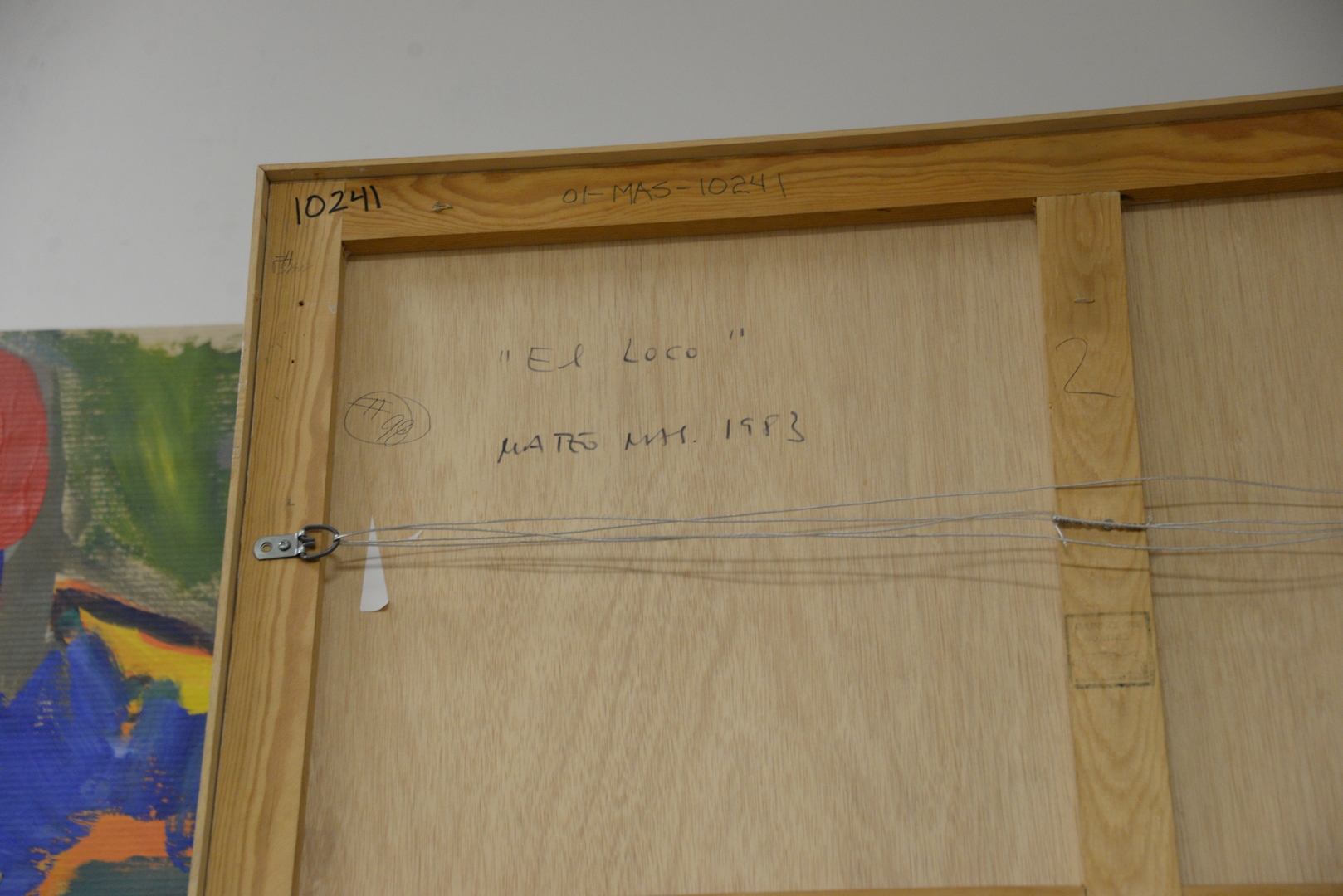 Pepe Mateo Mas (Spanish, 1945 – 2007), El Loco, 1983, oil on canvas, signed and dated lower right “Mateo Mas 1983″, 60″ x 46 1/2”.