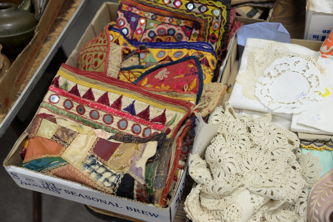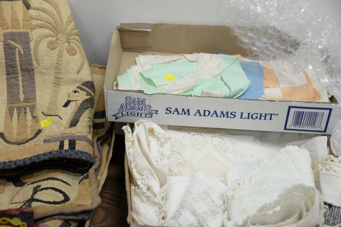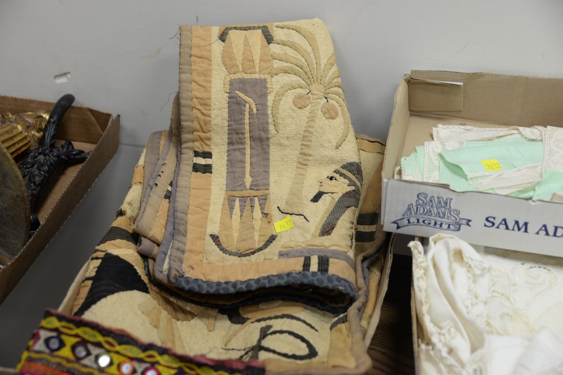 Lot 423: Six box lots of linen including Egyptian throw blankets.