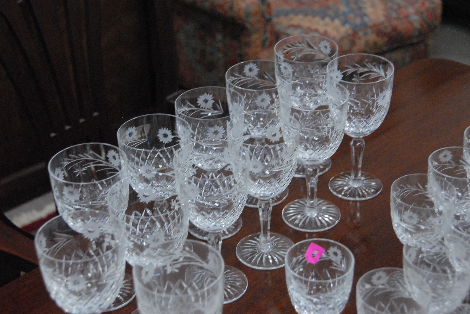 Twenty-eight piece lot of Scottish crystal marked Made in Edinburgh Scotland, 13 tall and 15 medium.