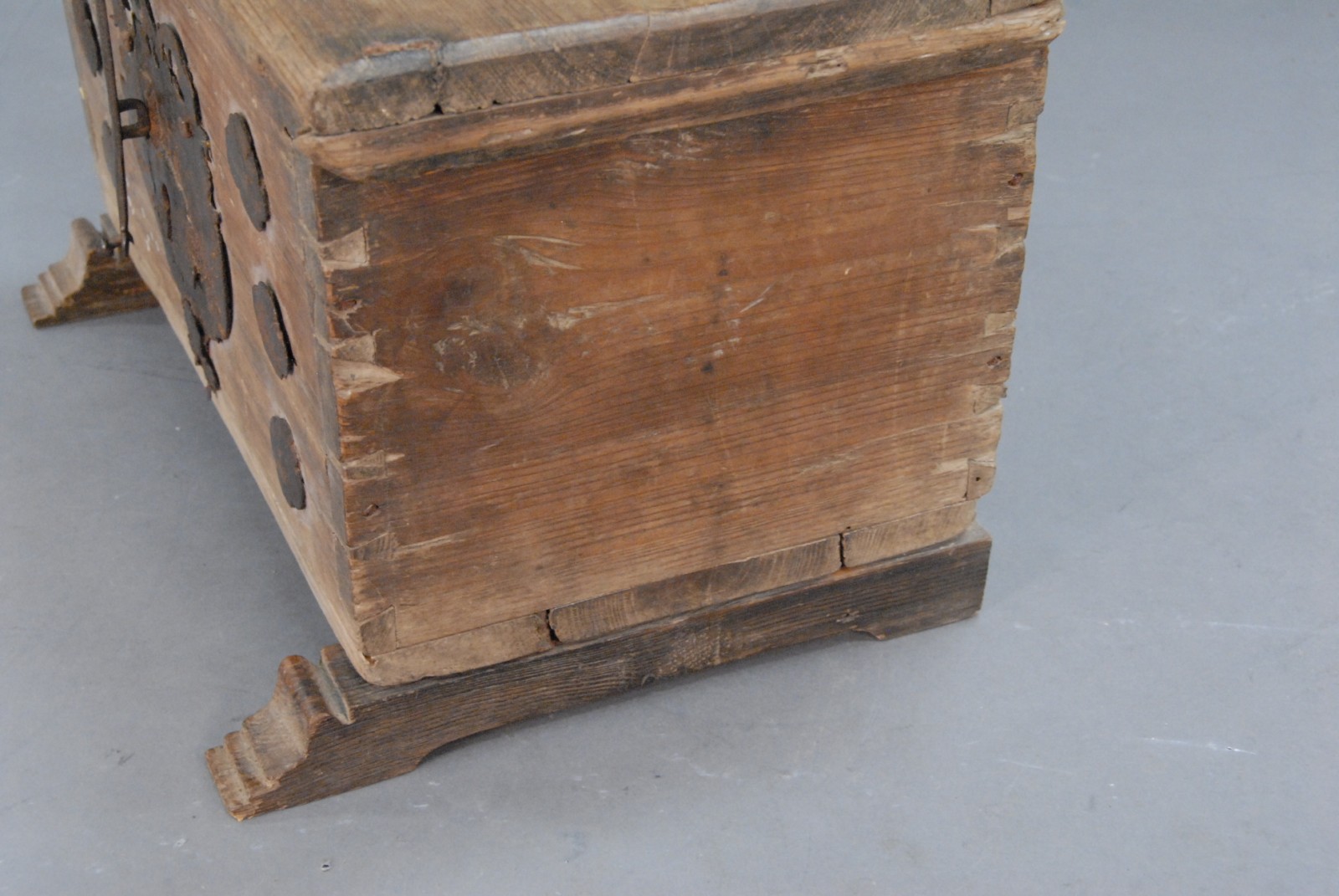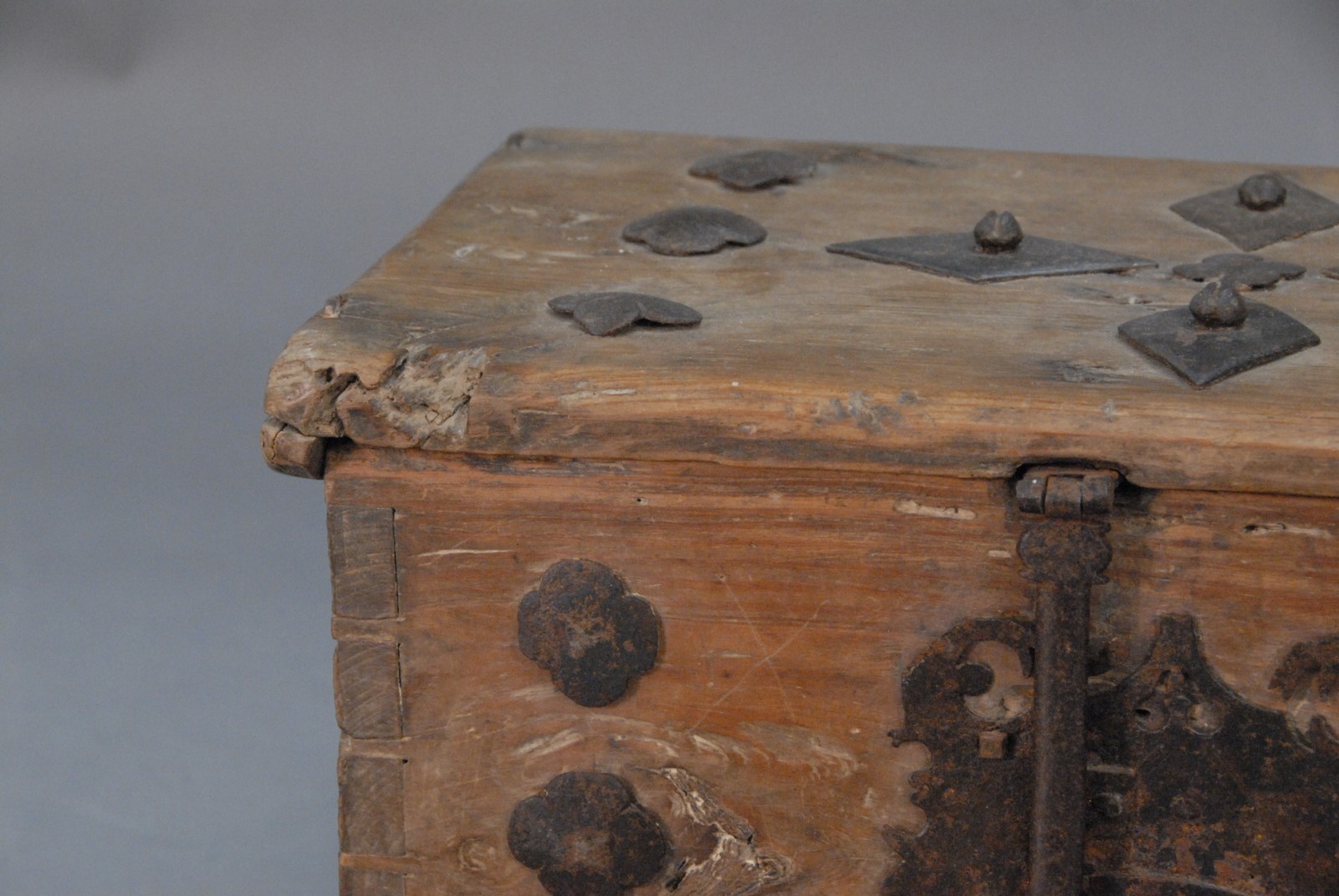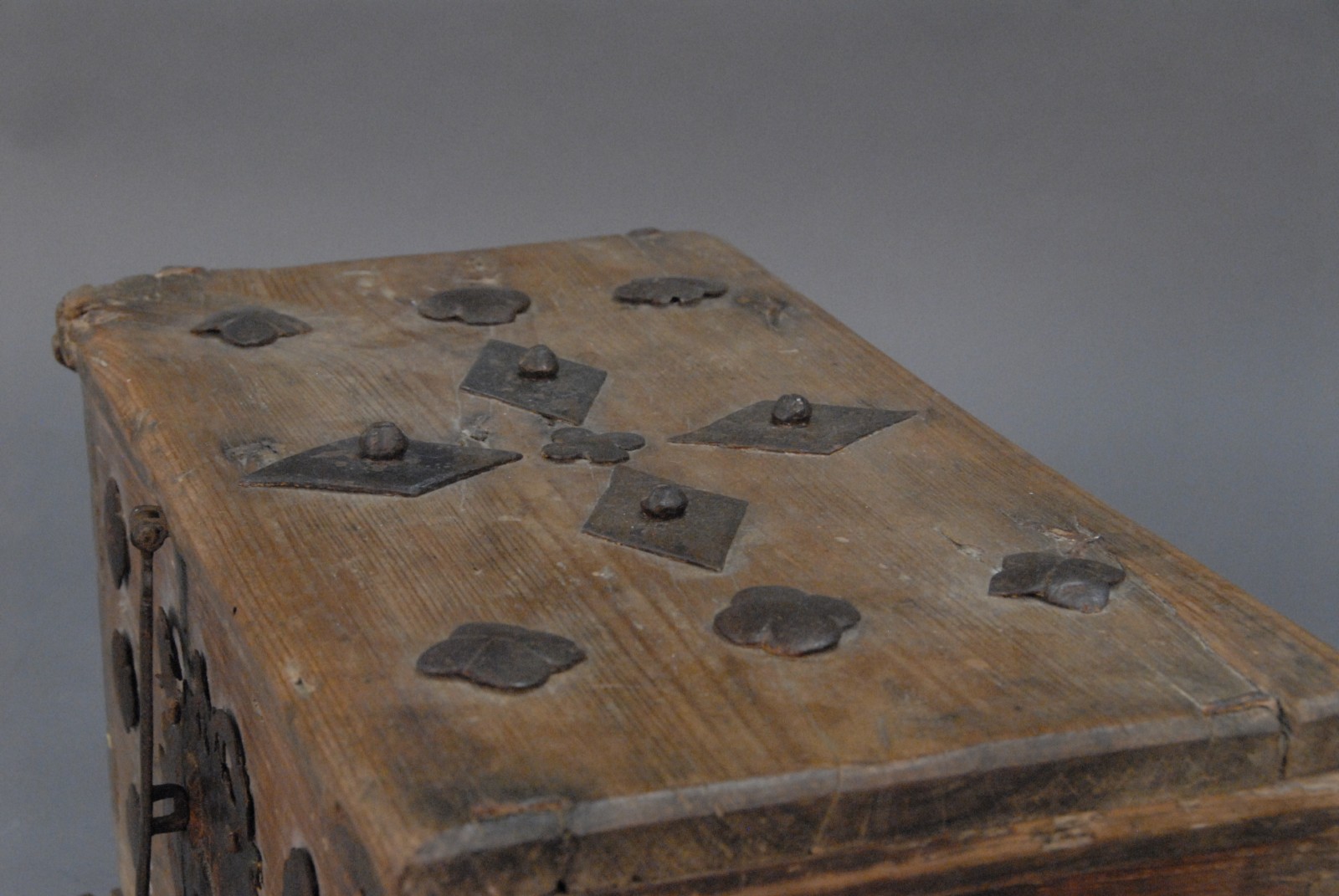Continental lift top small chest mounted with iron decoration 17th – 18th century.