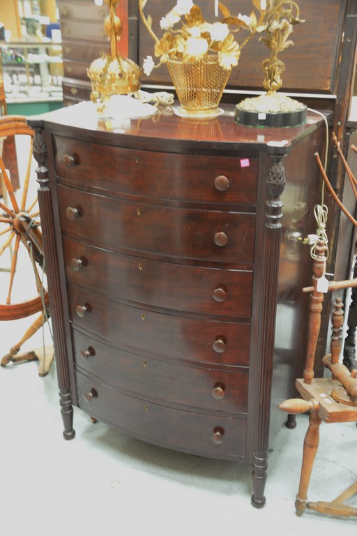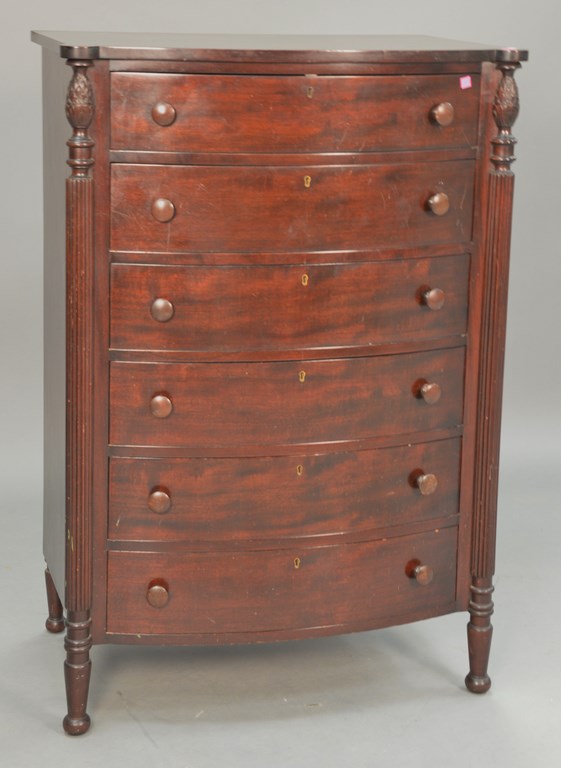 Custom mahogany six drawer chest. ht. 47 in. wd. 32 in.