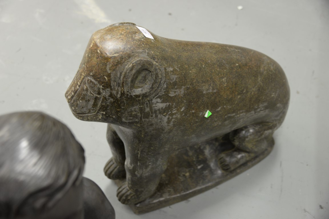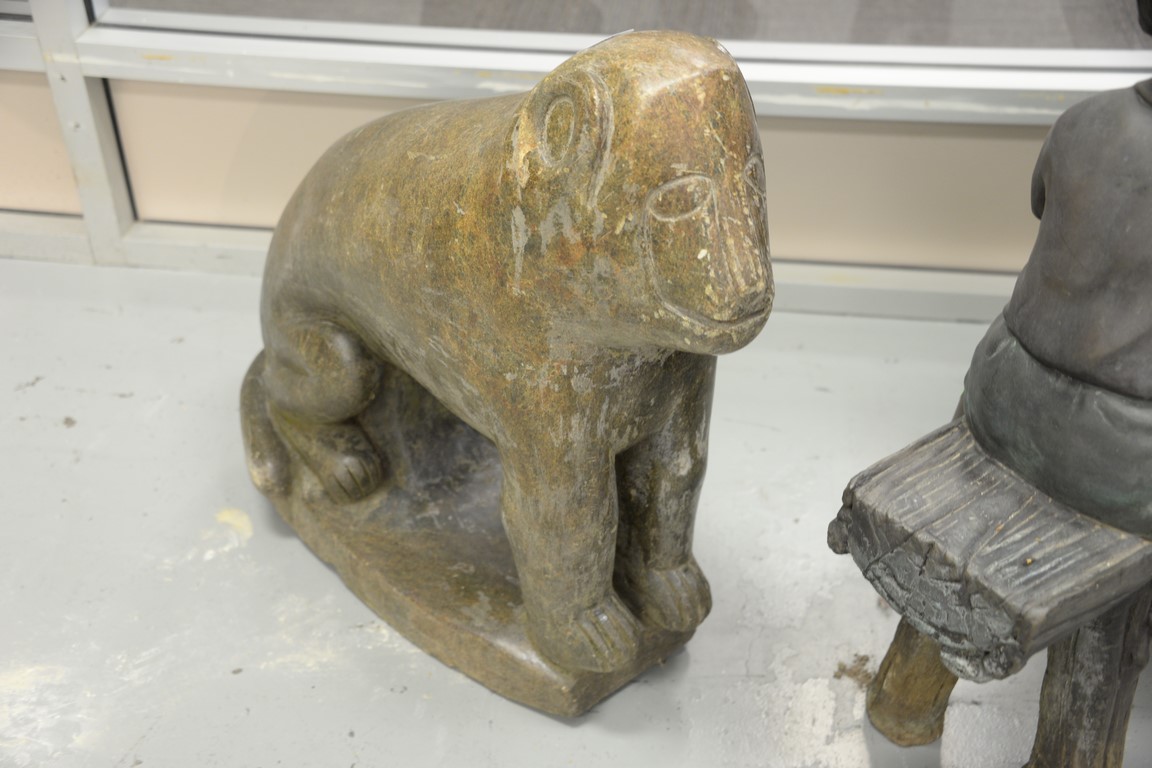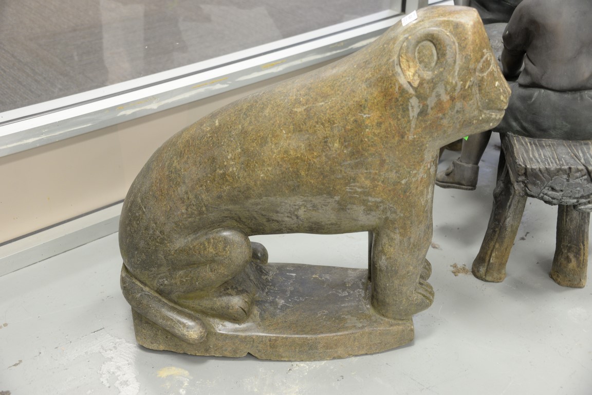 Lot 424: Granite carved animal, monkey. surface scratches, chip on ear and on base height 26 inches, length 30 inches Provenan…