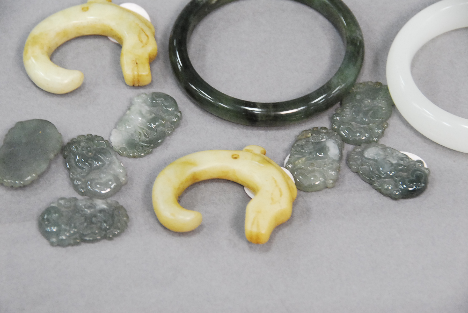 Group of eleven pieces of jade and hardstone, 1 to 3.