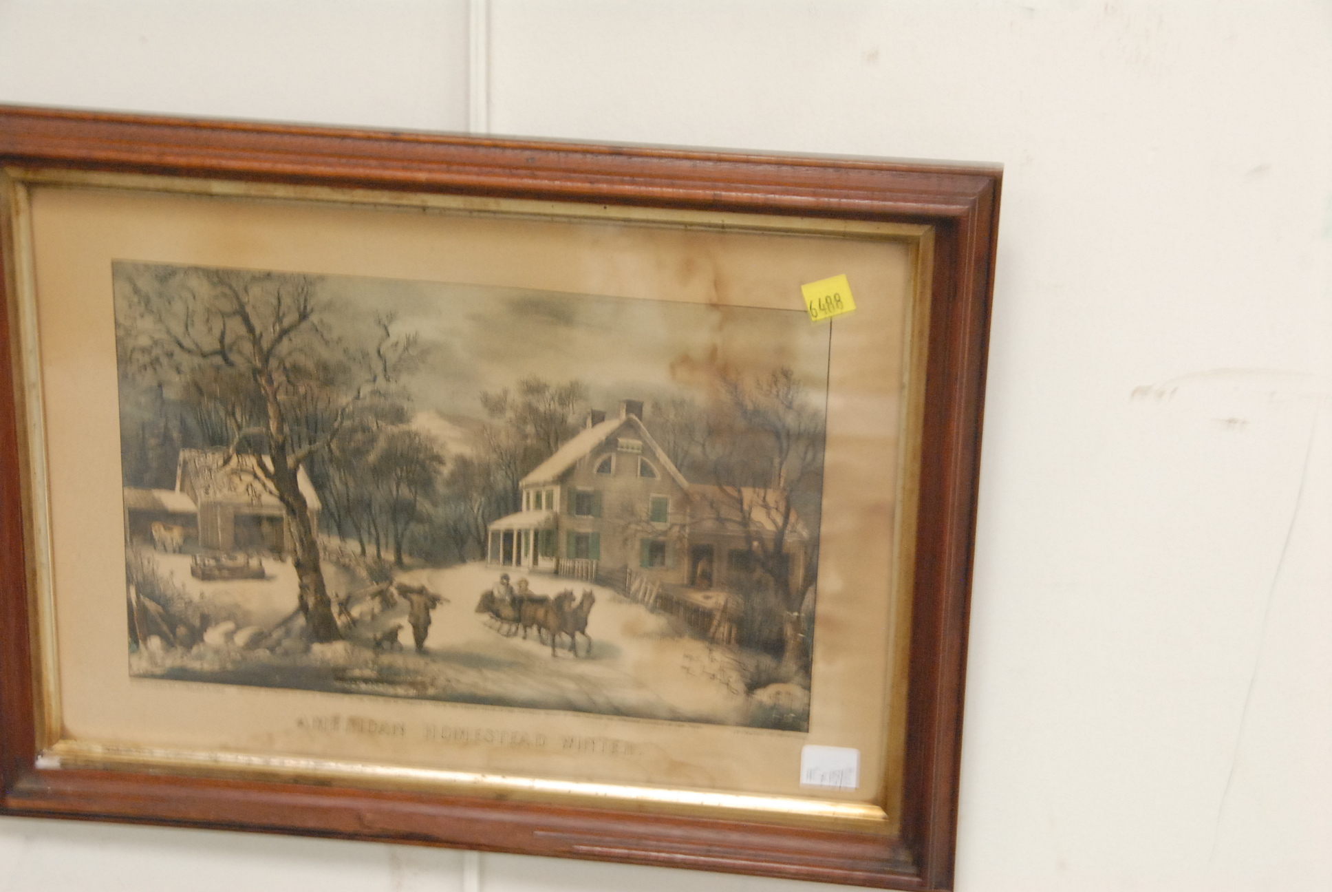 Group of four Currier and Ives prints, American Homestead Spring, Summer, Winter, and Autumn. Provenance: Estate of Judy Gengras McDonough of West Hartford, CT.