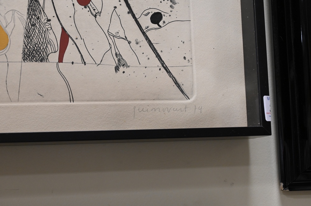 Josep Guinovart Y Bertran (Spanish, 1927-2007), Untitled abstraction, gouache and etching on paper, signed, dated and numbered in pencil through the lower margin 10/50 Guinovart 74′, River Gallery Letter on verso, image size 18.5″ x 24.5″.
