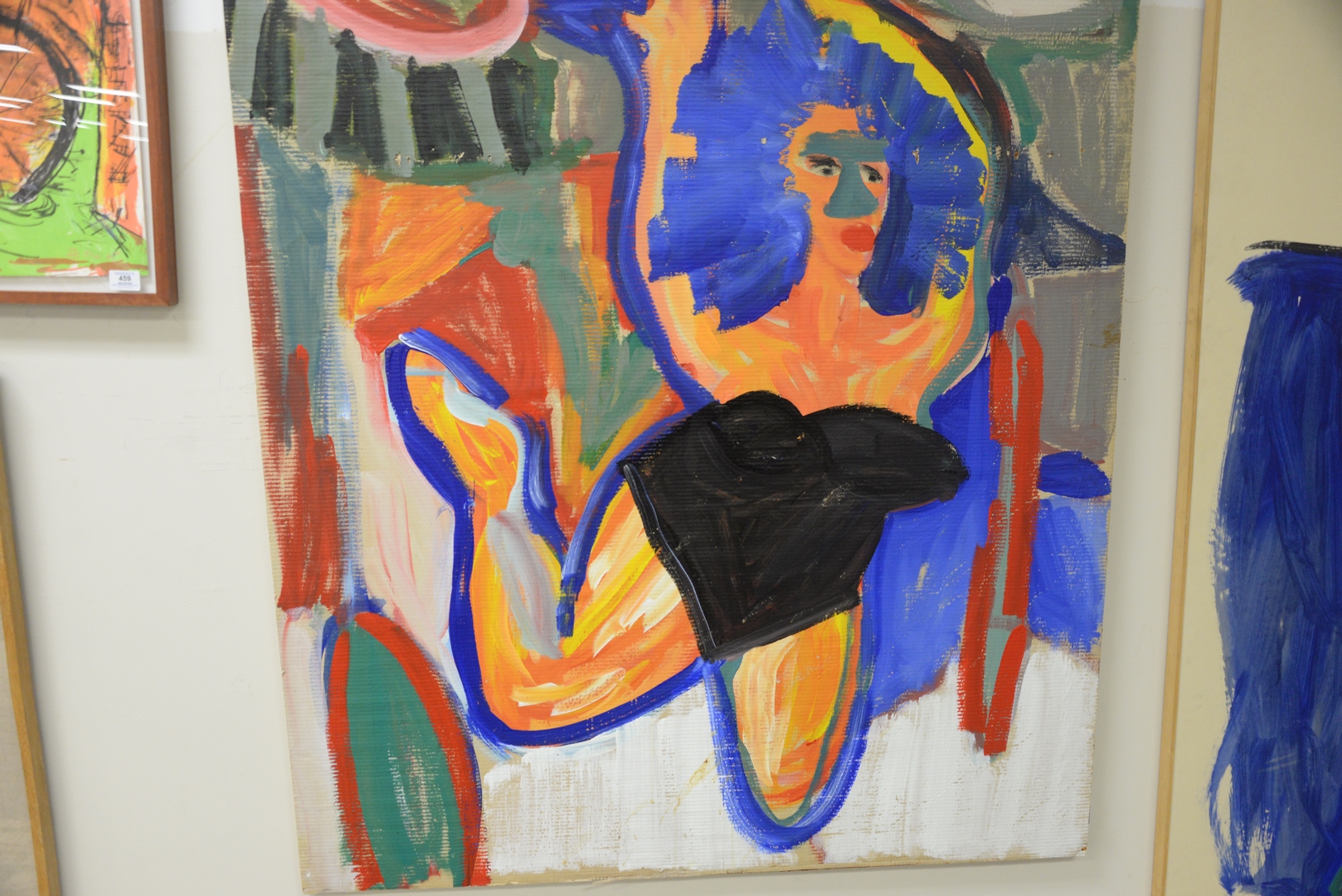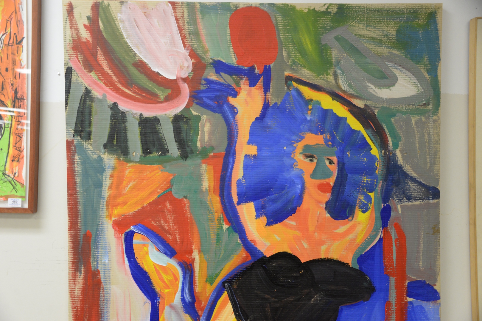Lot 424: Pepe Mateo Mas (Spanish, 1945 – 2007), Anita, 1983, oil on cardboard, unsigned, 52″ x 46 1/2″.