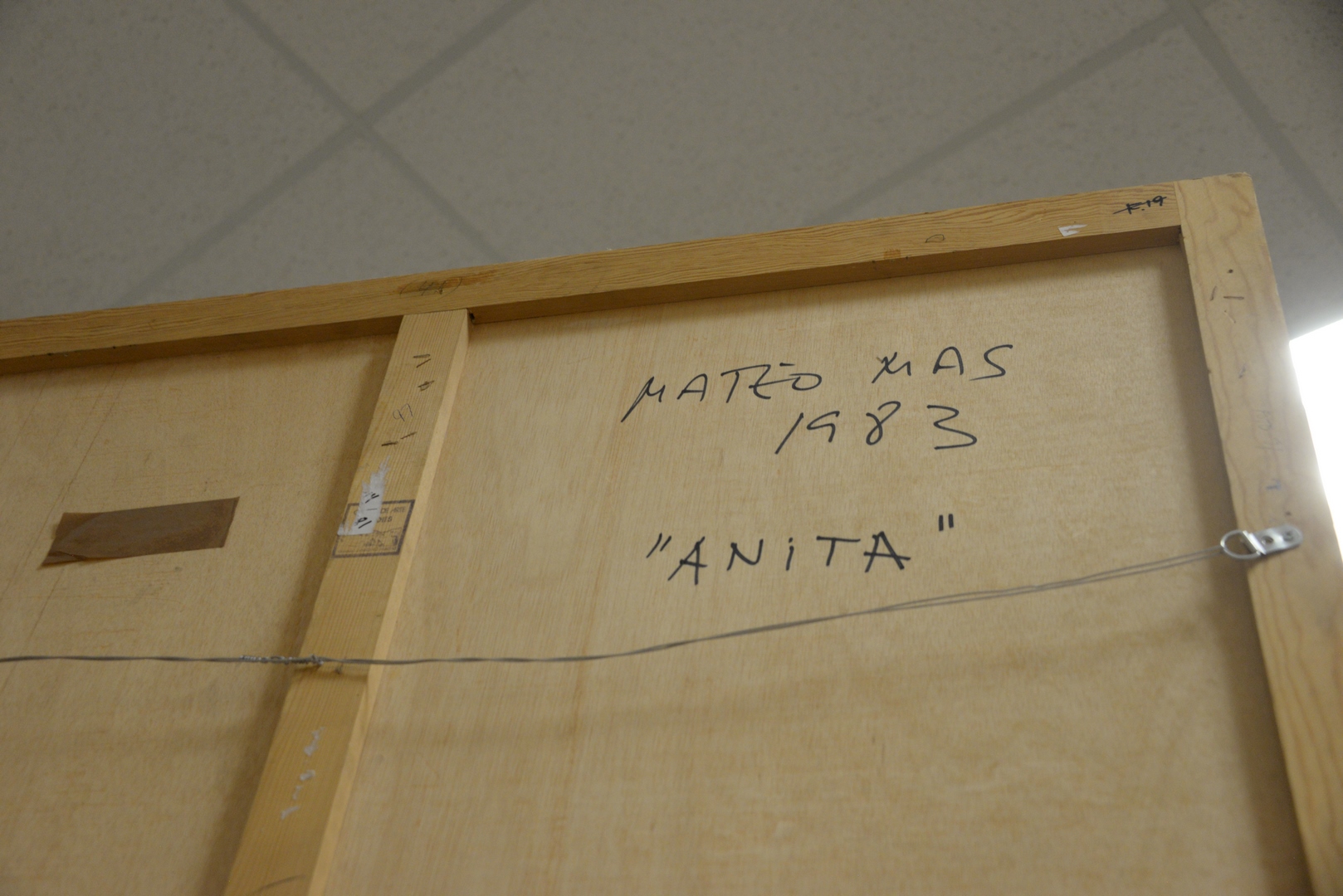 Pepe Mateo Mas (Spanish, 1945 – 2007), Anita, 1983, oil on cardboard, unsigned, 52″ x 46 1/2″.