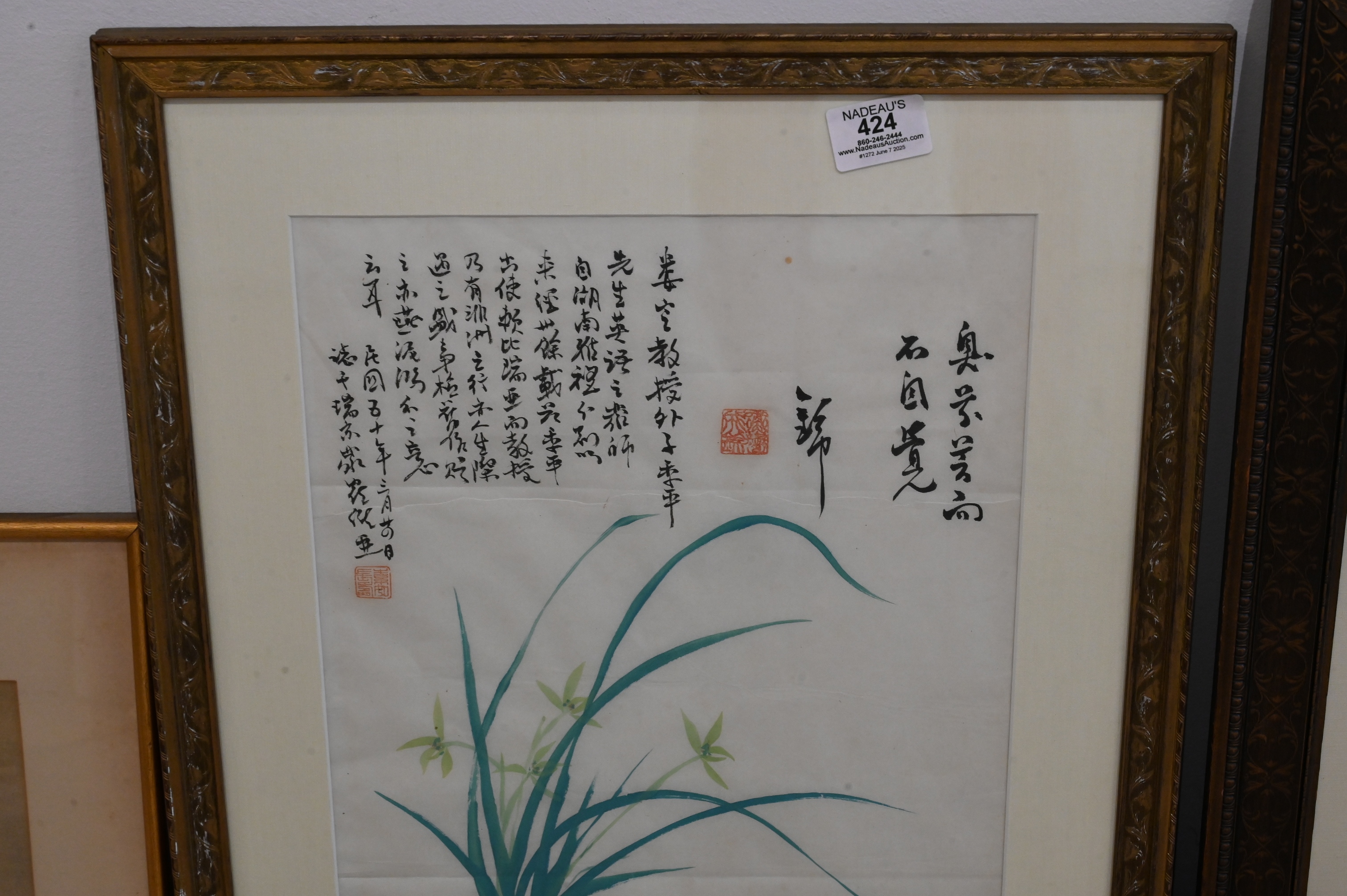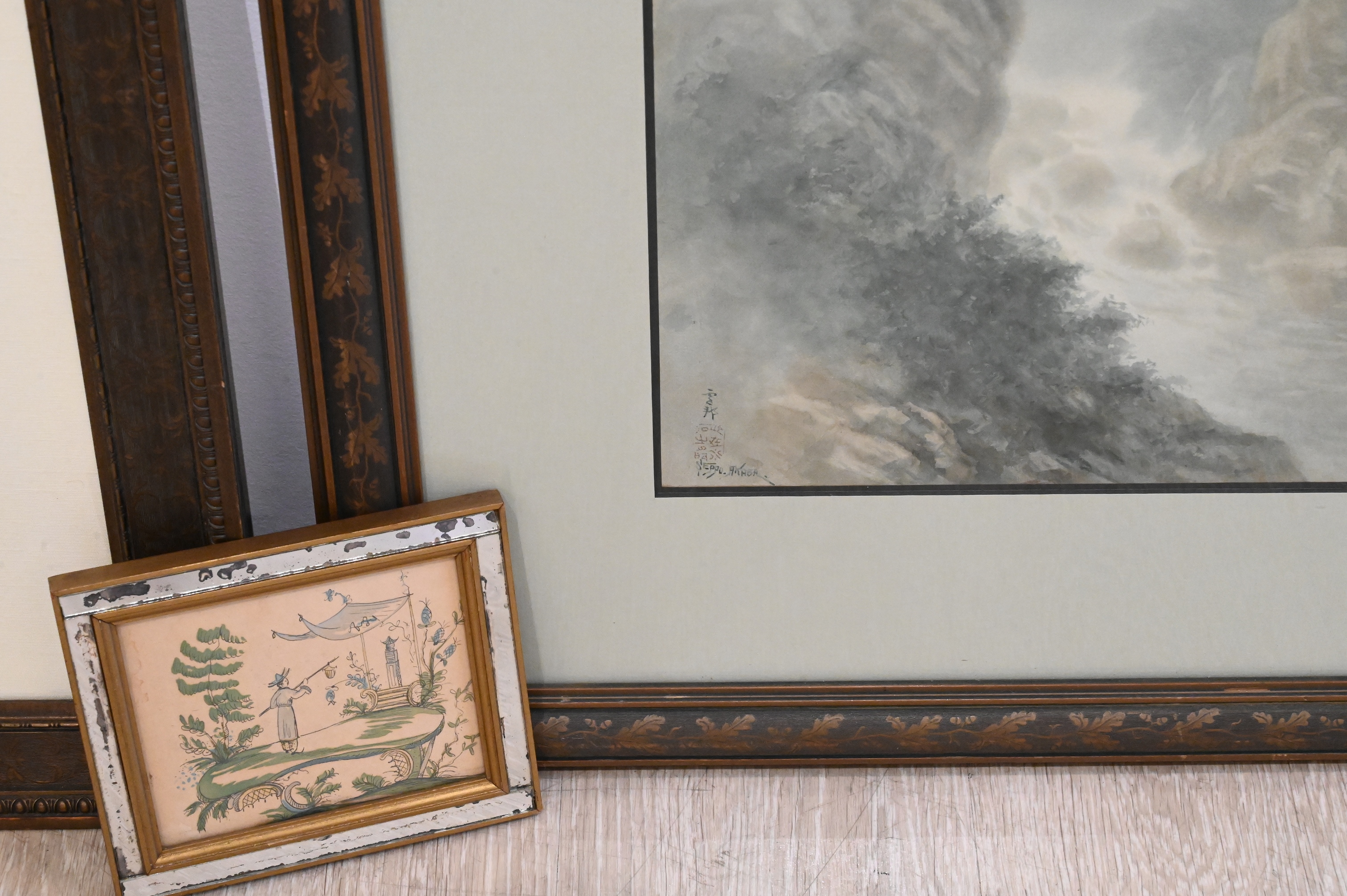 along with two small Asian watercolors, calligraphy piece etc…