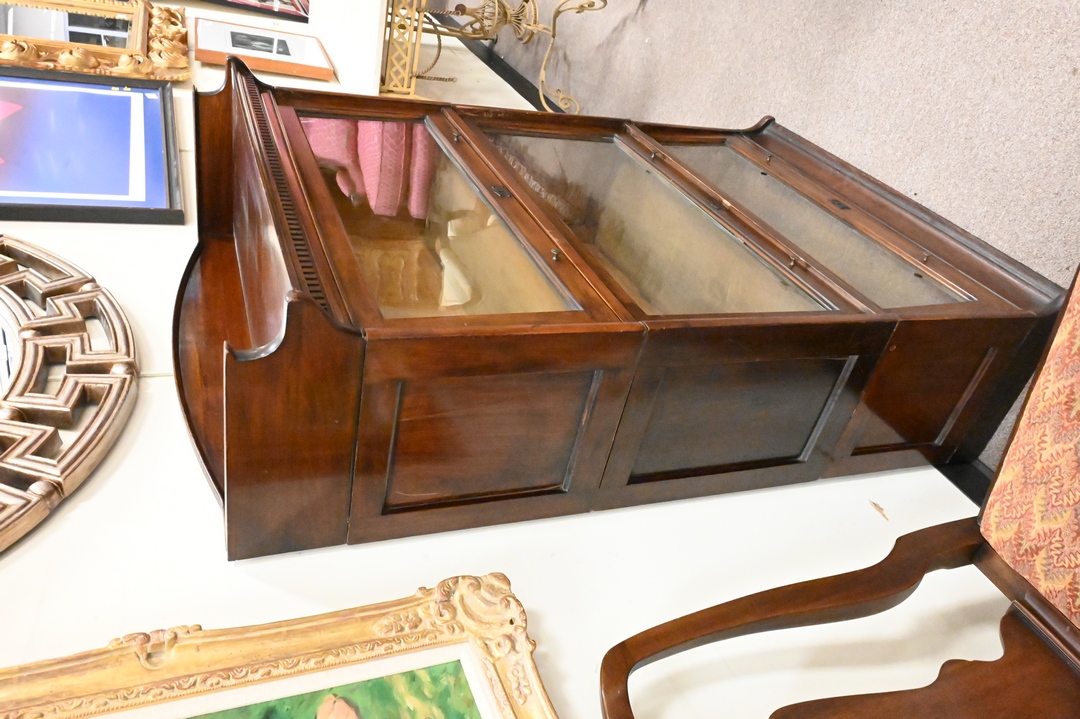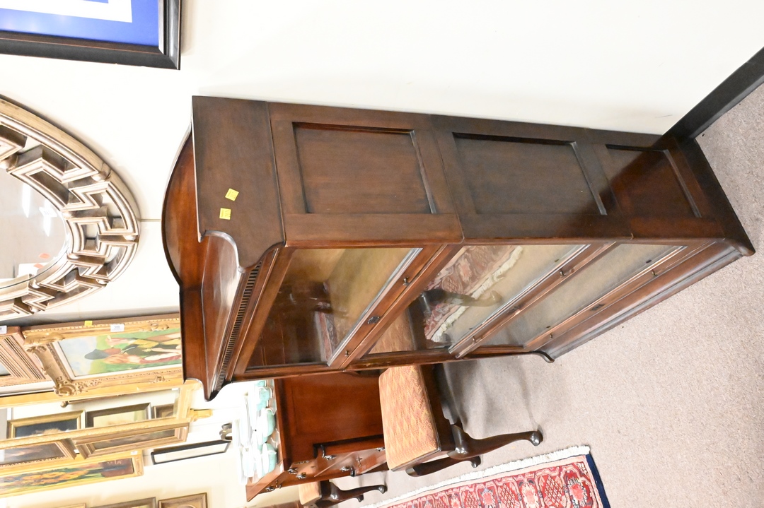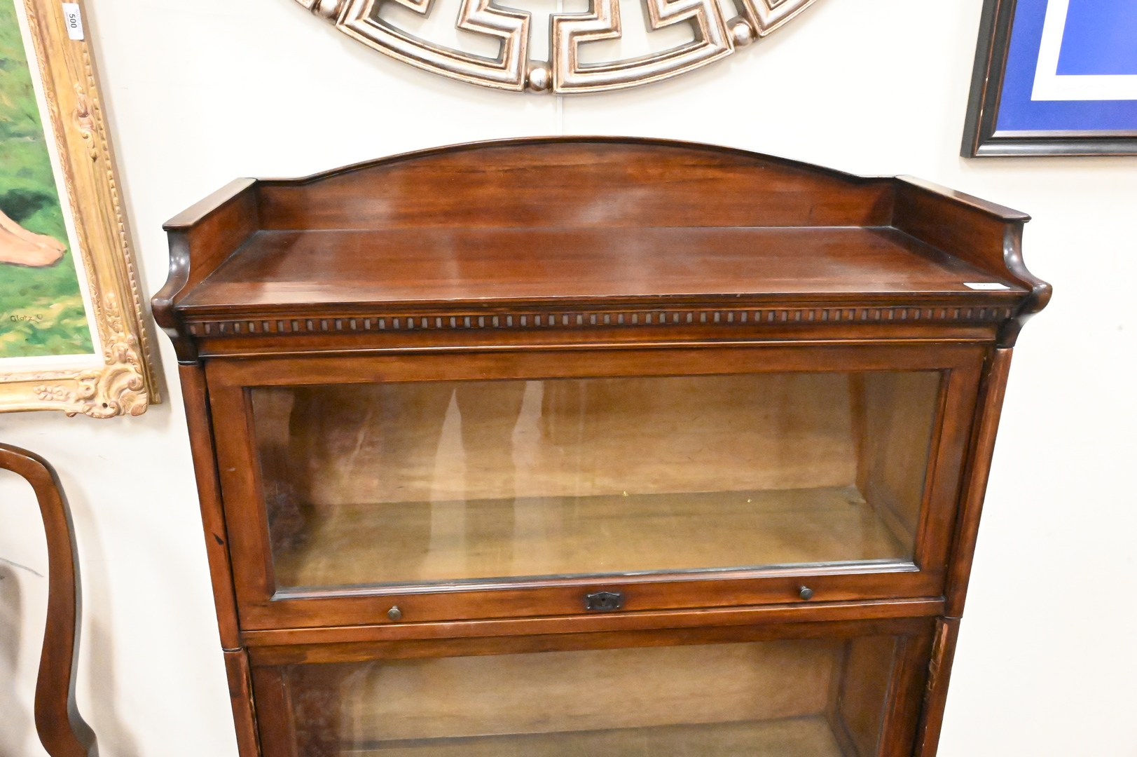 Mahogany Three Part Stacking Bookcase, height 53 inches, width 35 inches, depth 14 1/2 inches.