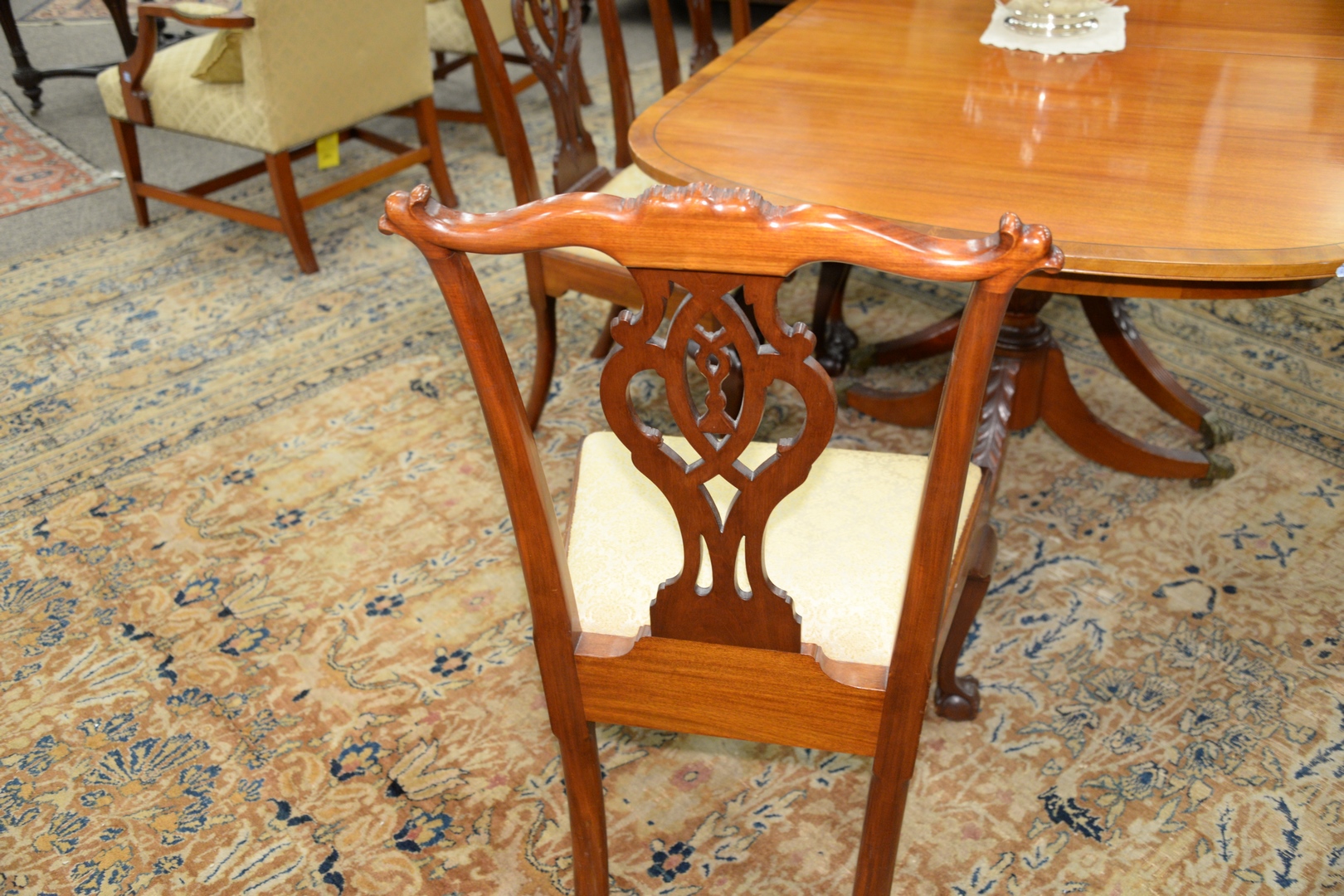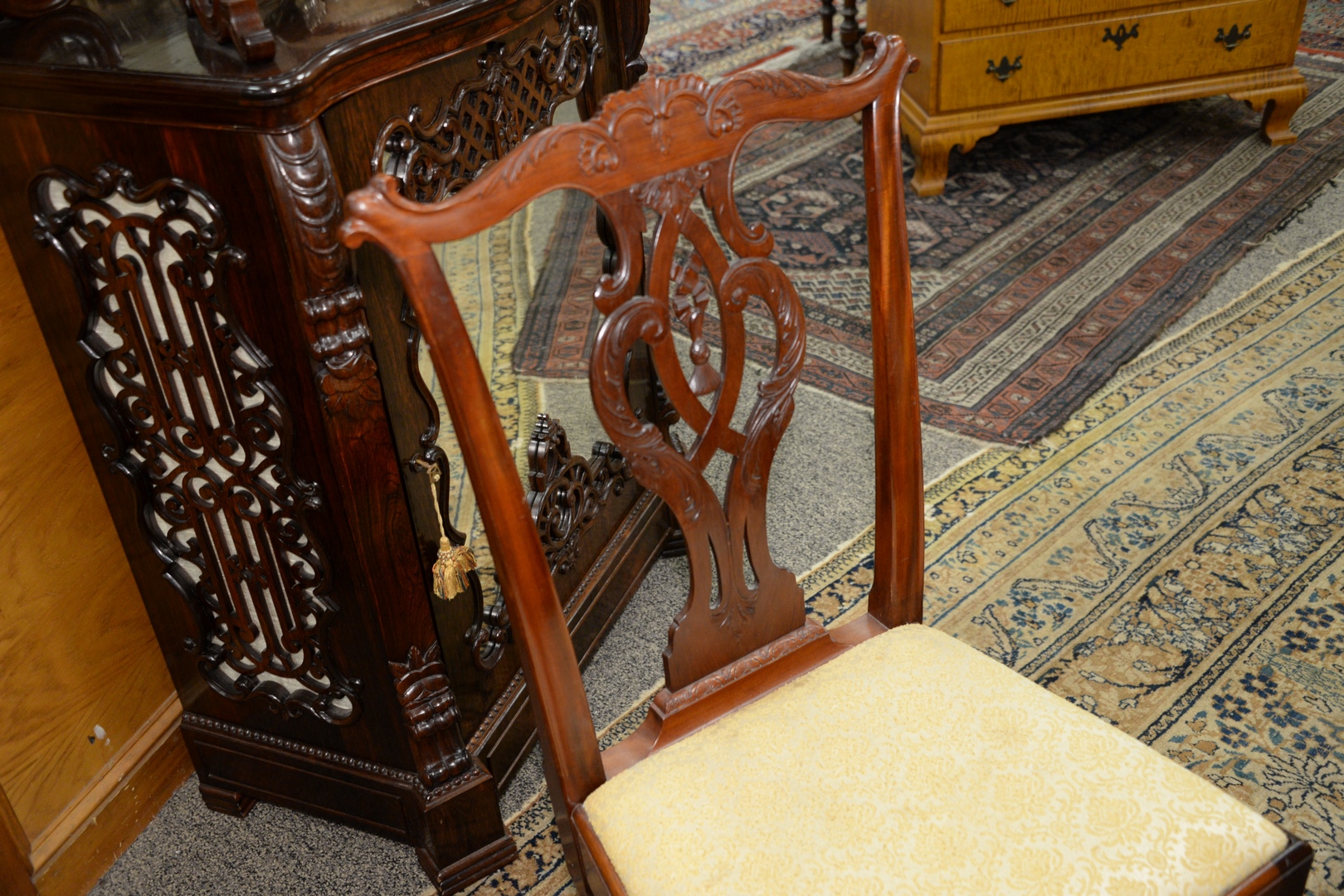 Set of Six Custom Tassel Back Chippendale Style Dining Chairs