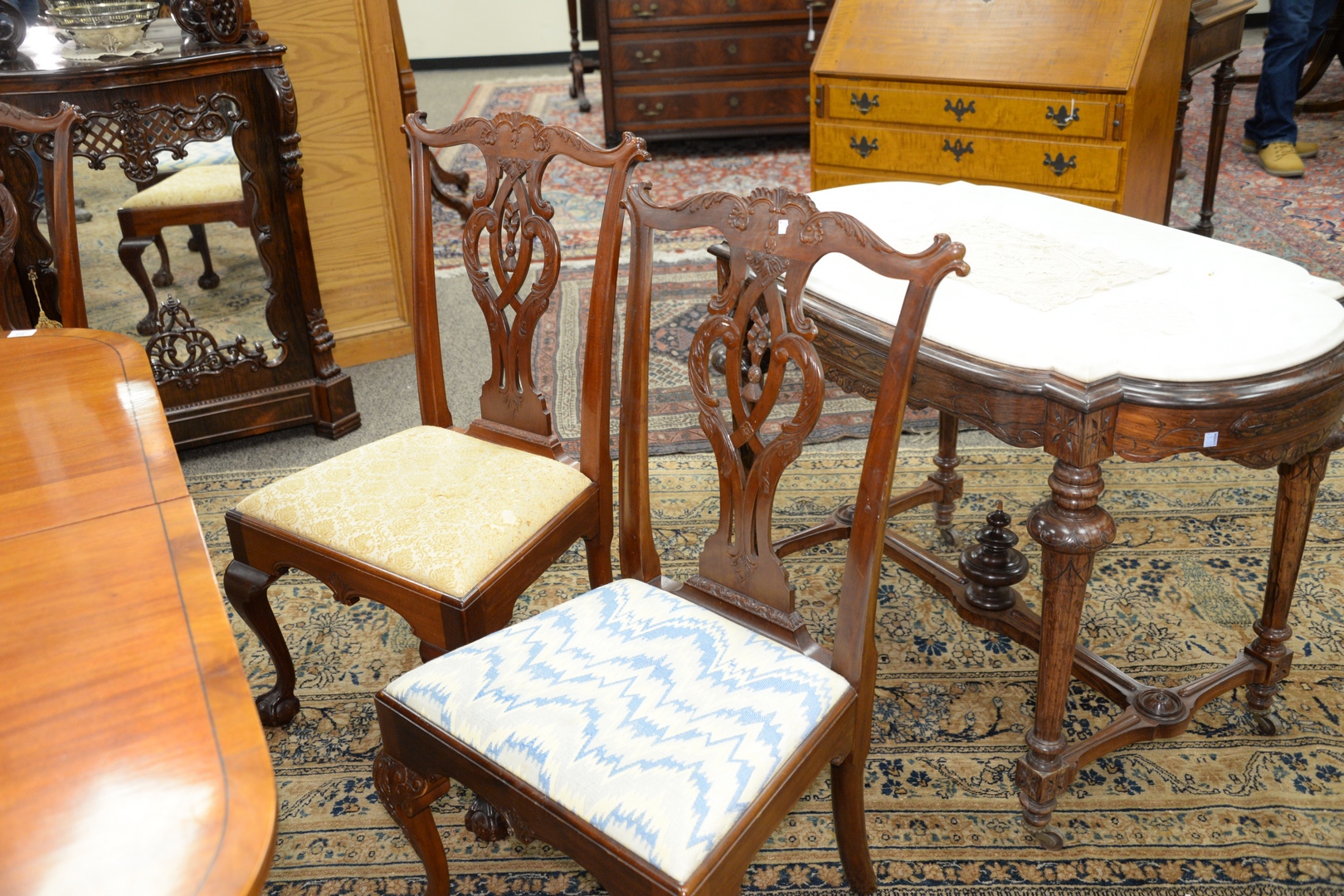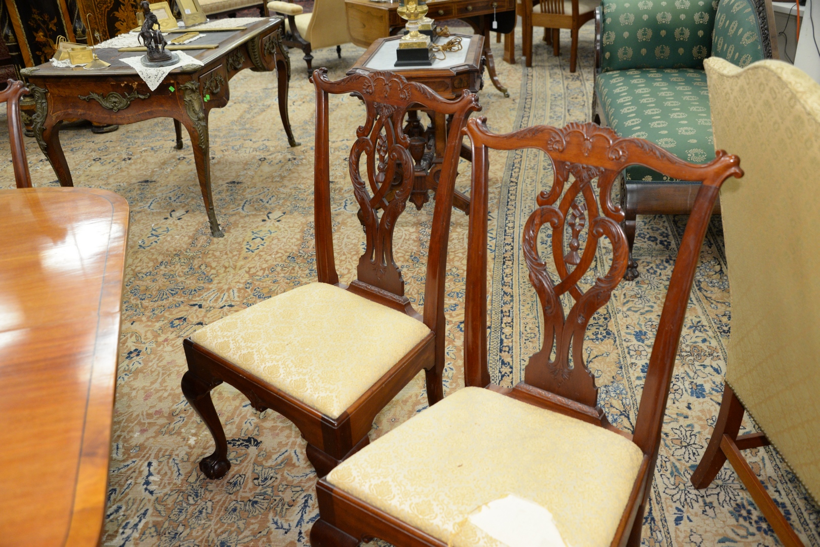 Lot 425: Set of Six Custom Tassel Back Chippendale Style Dining Chairs five signed E. Poddig, 1942, one attributed to Charles Post height 40 …
