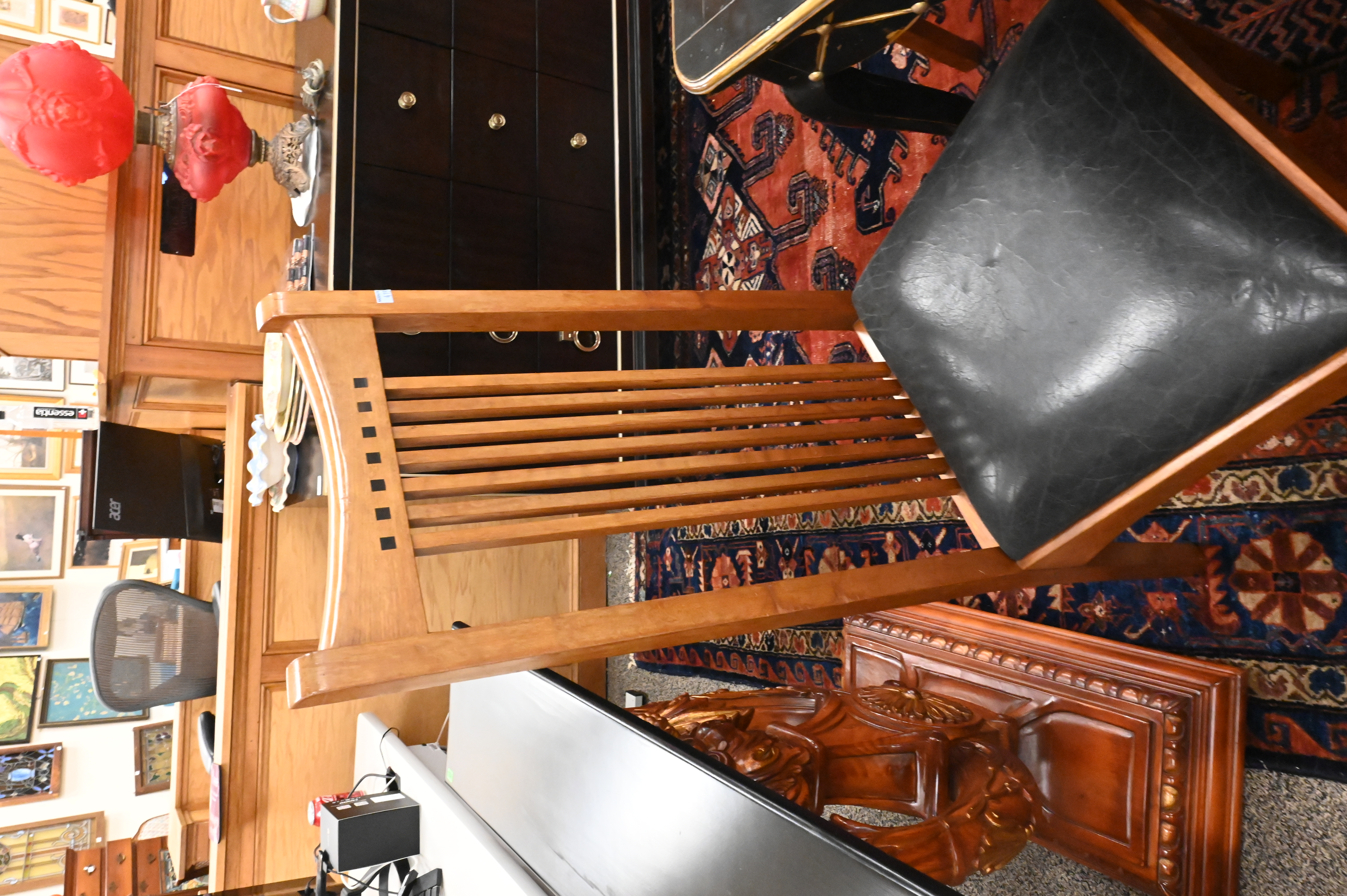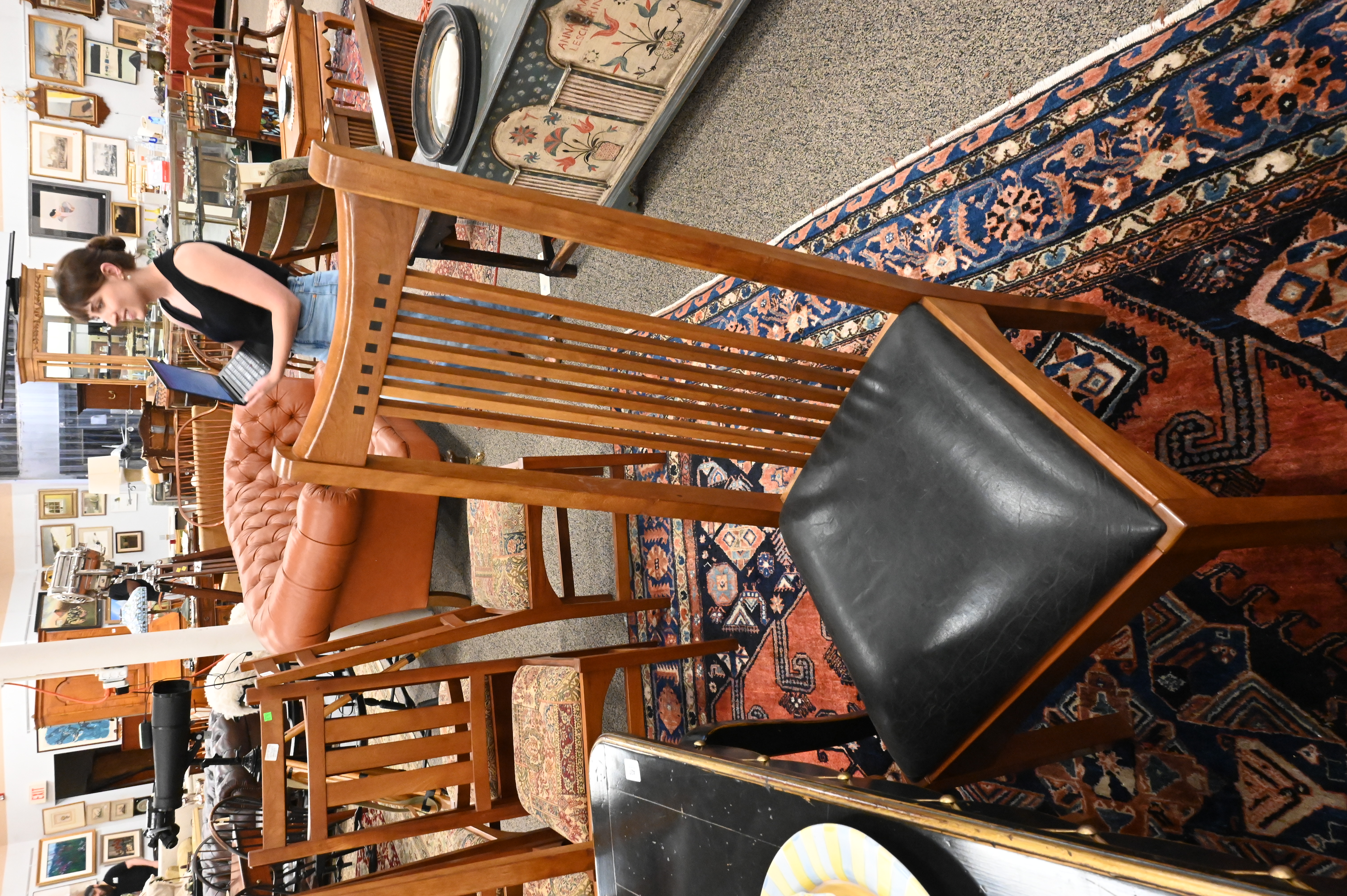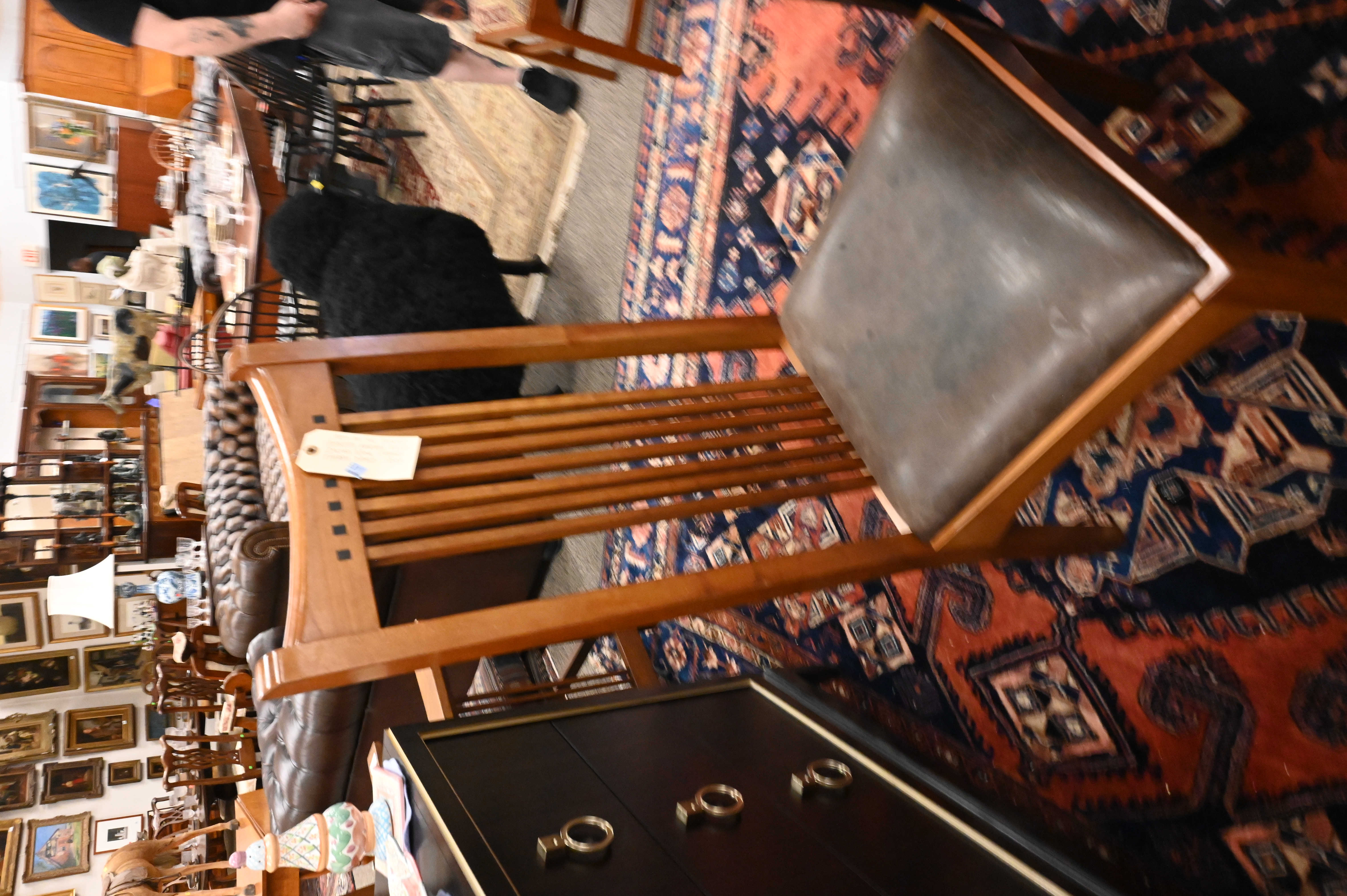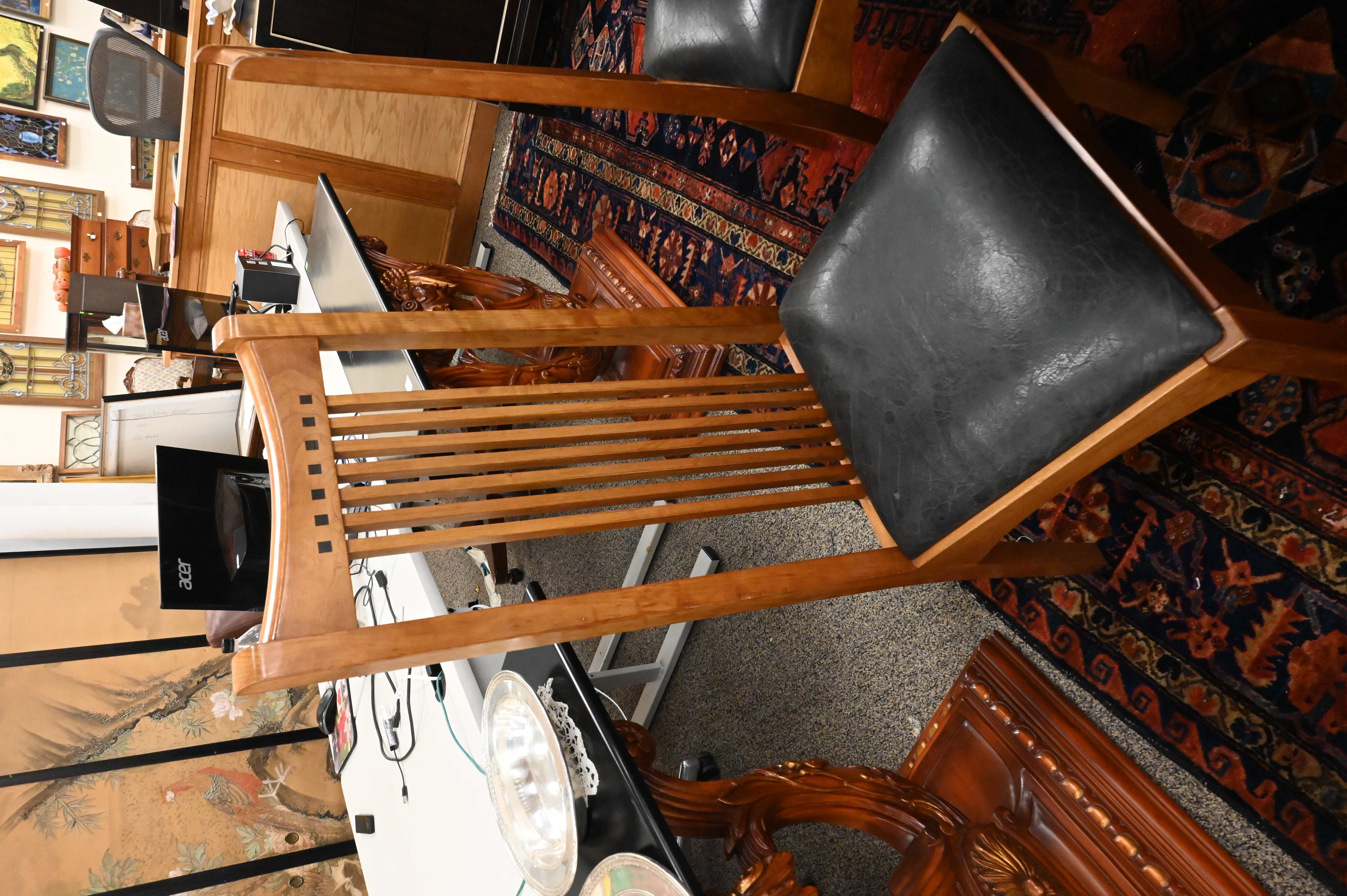 having leather cushions, stamped “Stickley”, stain #3, 1998