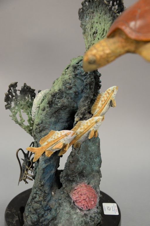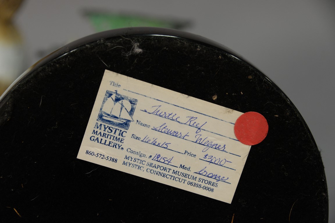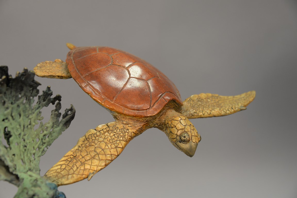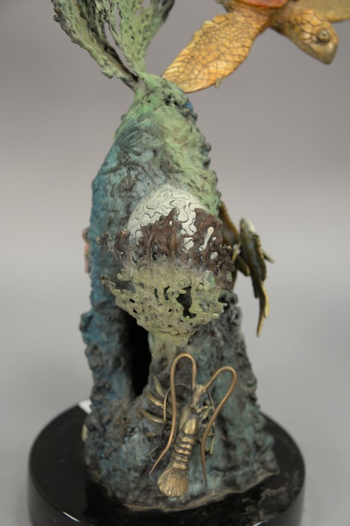 Lot 425: Stewart Wegner bronze sea turtle sculpture Turtle Reef 7/75, signed Wegner. ht. 16 1/2in., dia. base 8in.