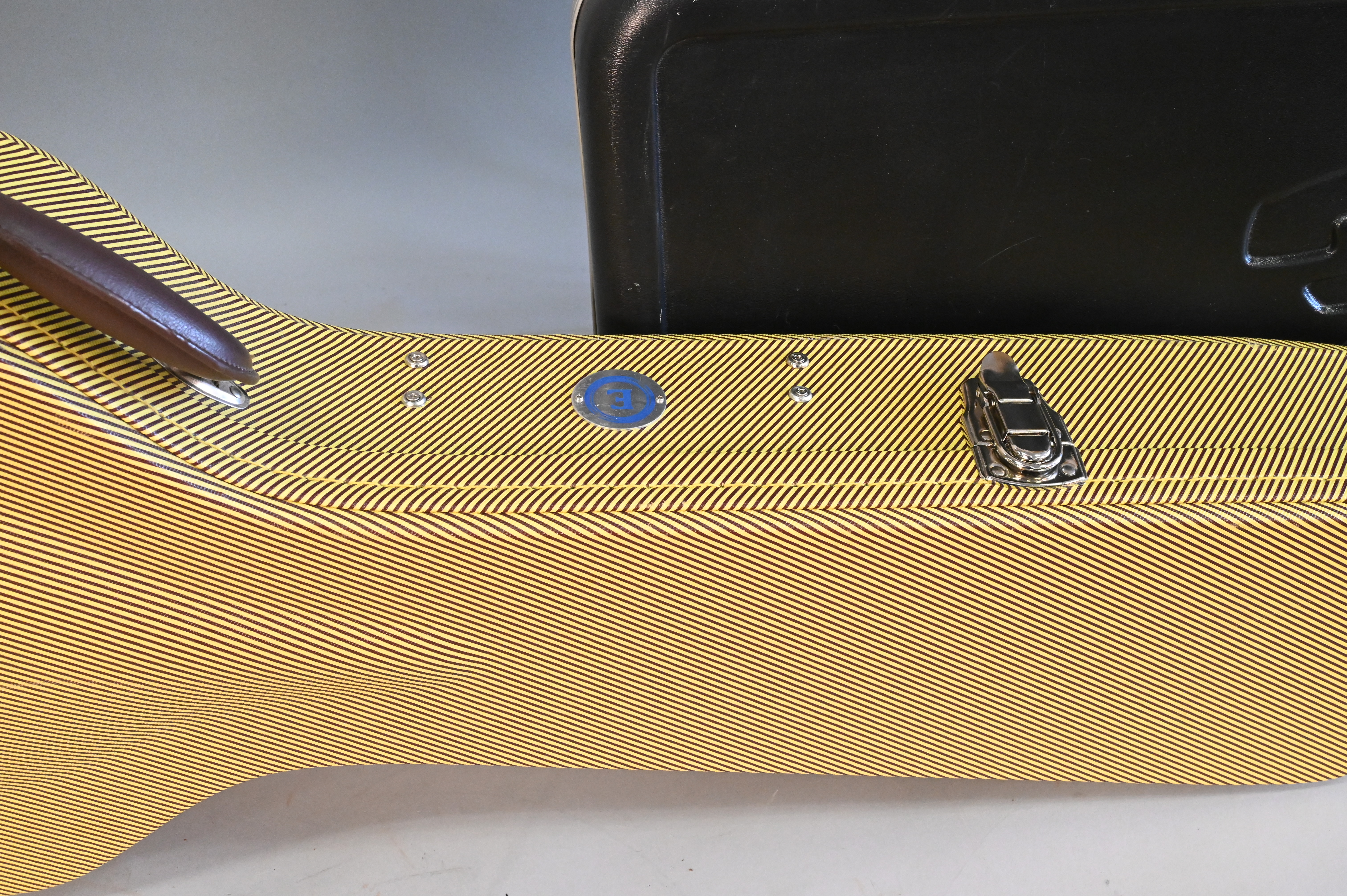Three Piece Guitar Case Lot, to include tweed hard shell case (fits any Gibson ES-335 size guitars), vintage 1975-79 Fender Stratocaster molded hard case, and Guitar Research soft case.