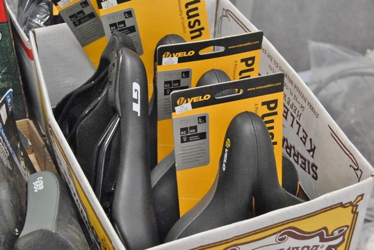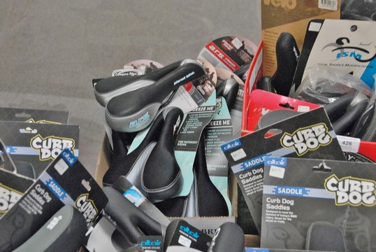 7 boxes of bike seats, approx. 42, approx. retail value 850.00