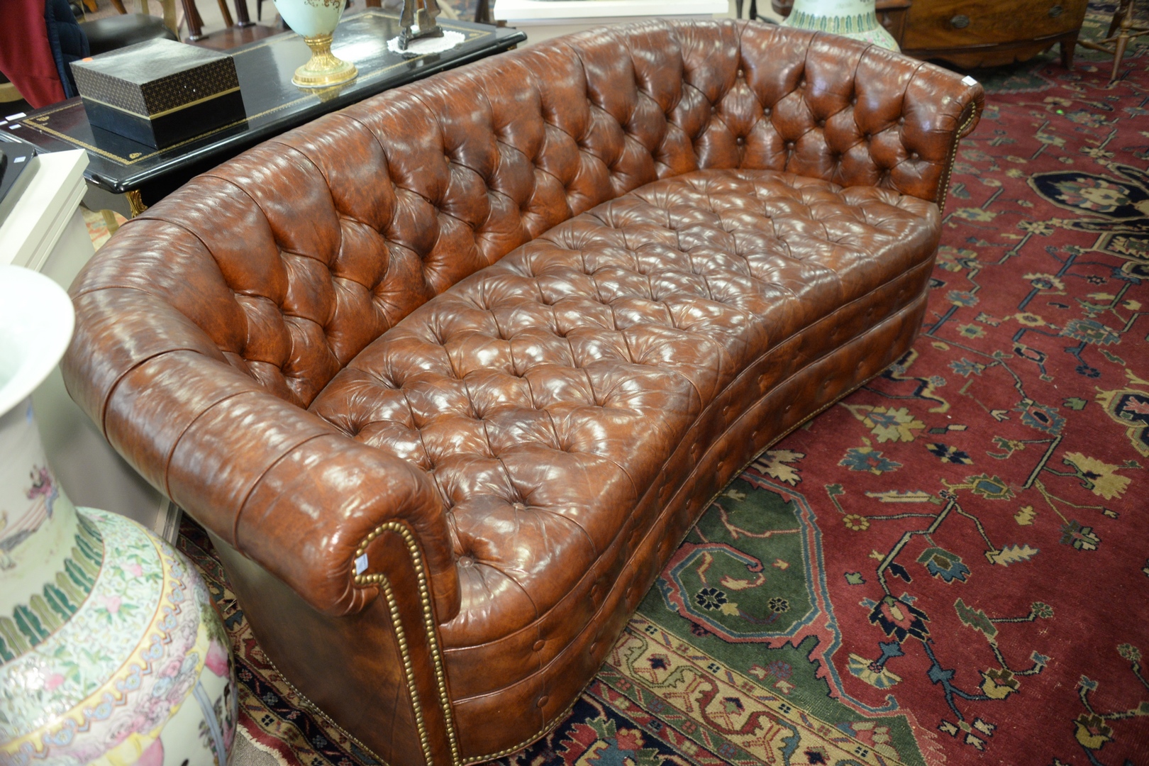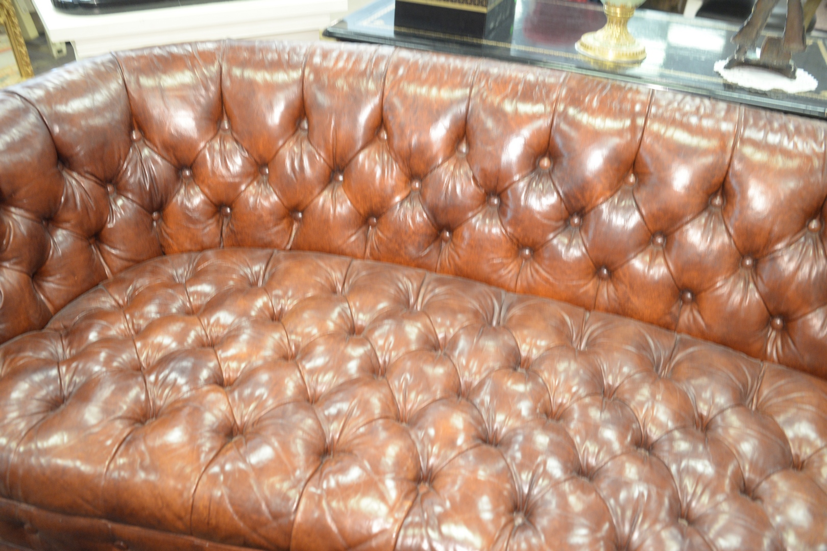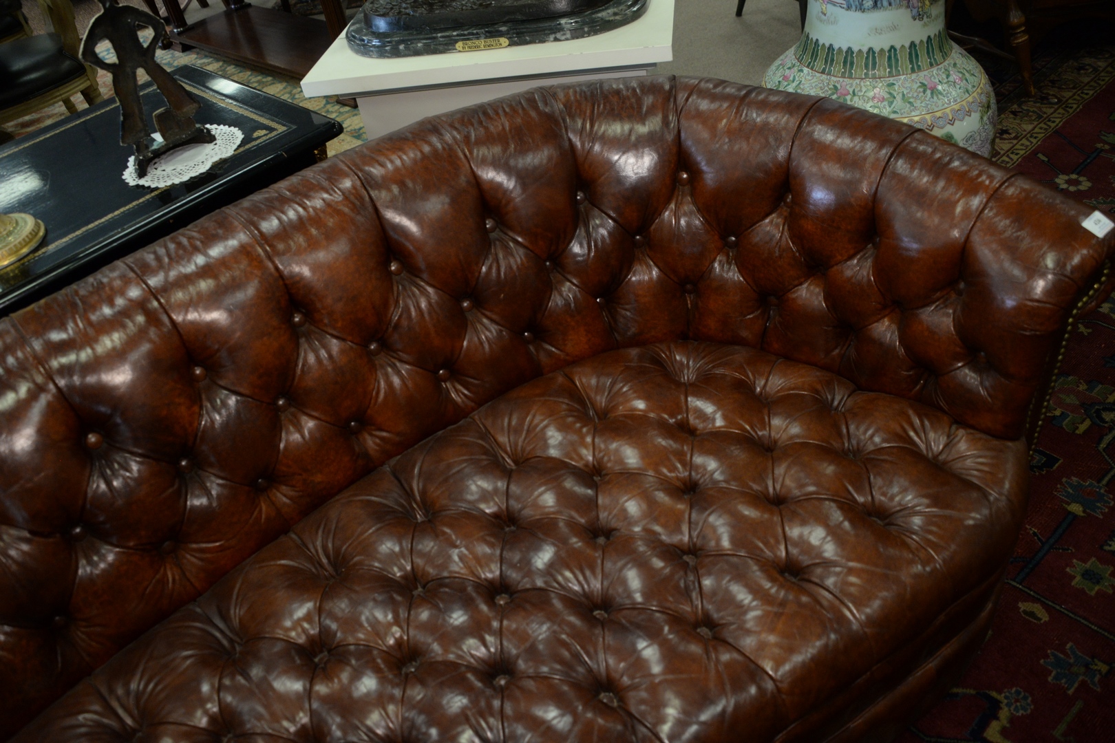 Brown Leather Tufted Sofa height 28 inches, length 73 inches
