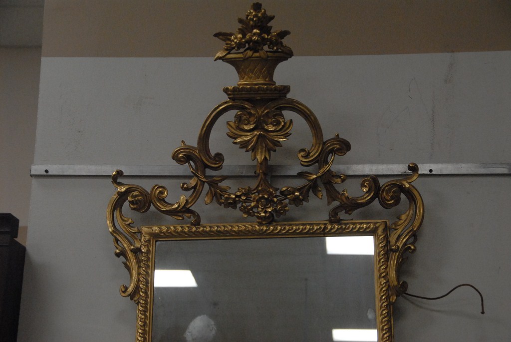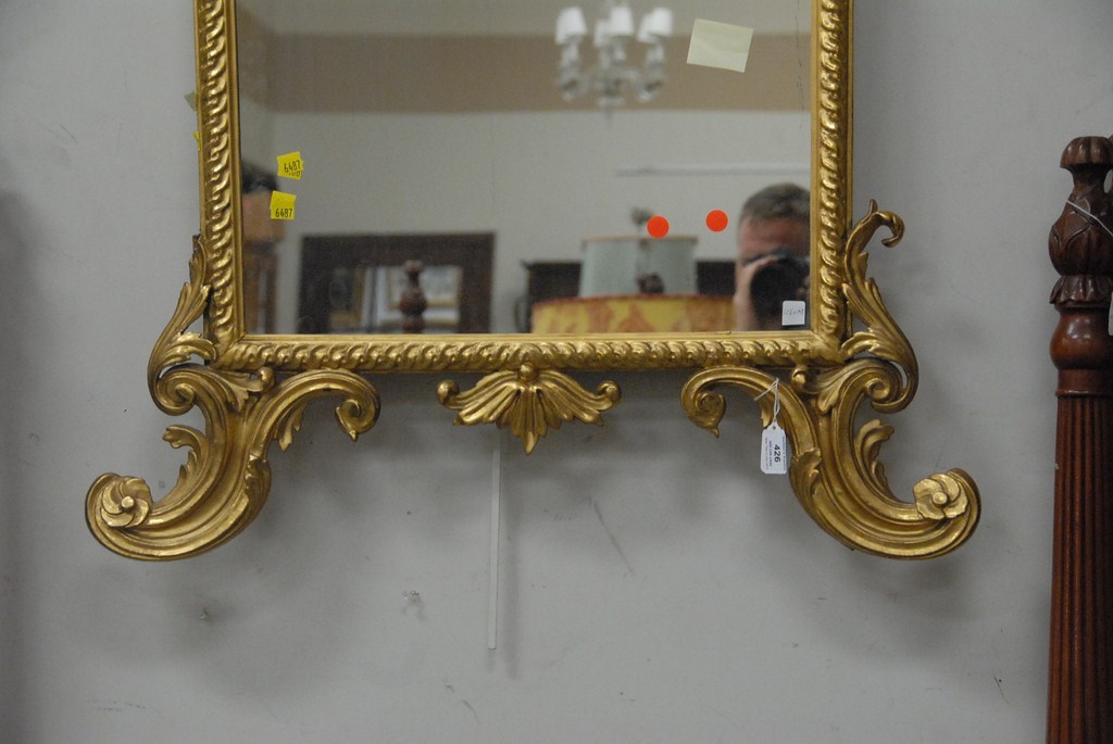 Lot 426: Chippendale gilt mirror with basket of flowers top on openwork scrolls, rectangular mirror, and scrolled legs, probably 18th century…