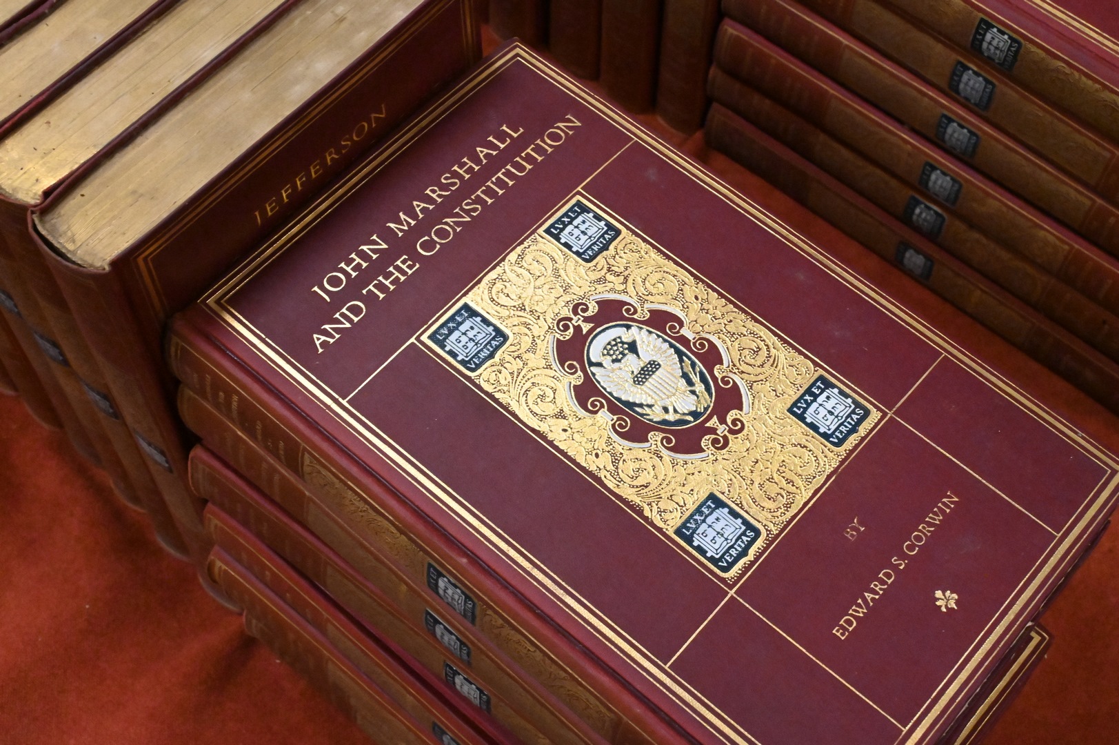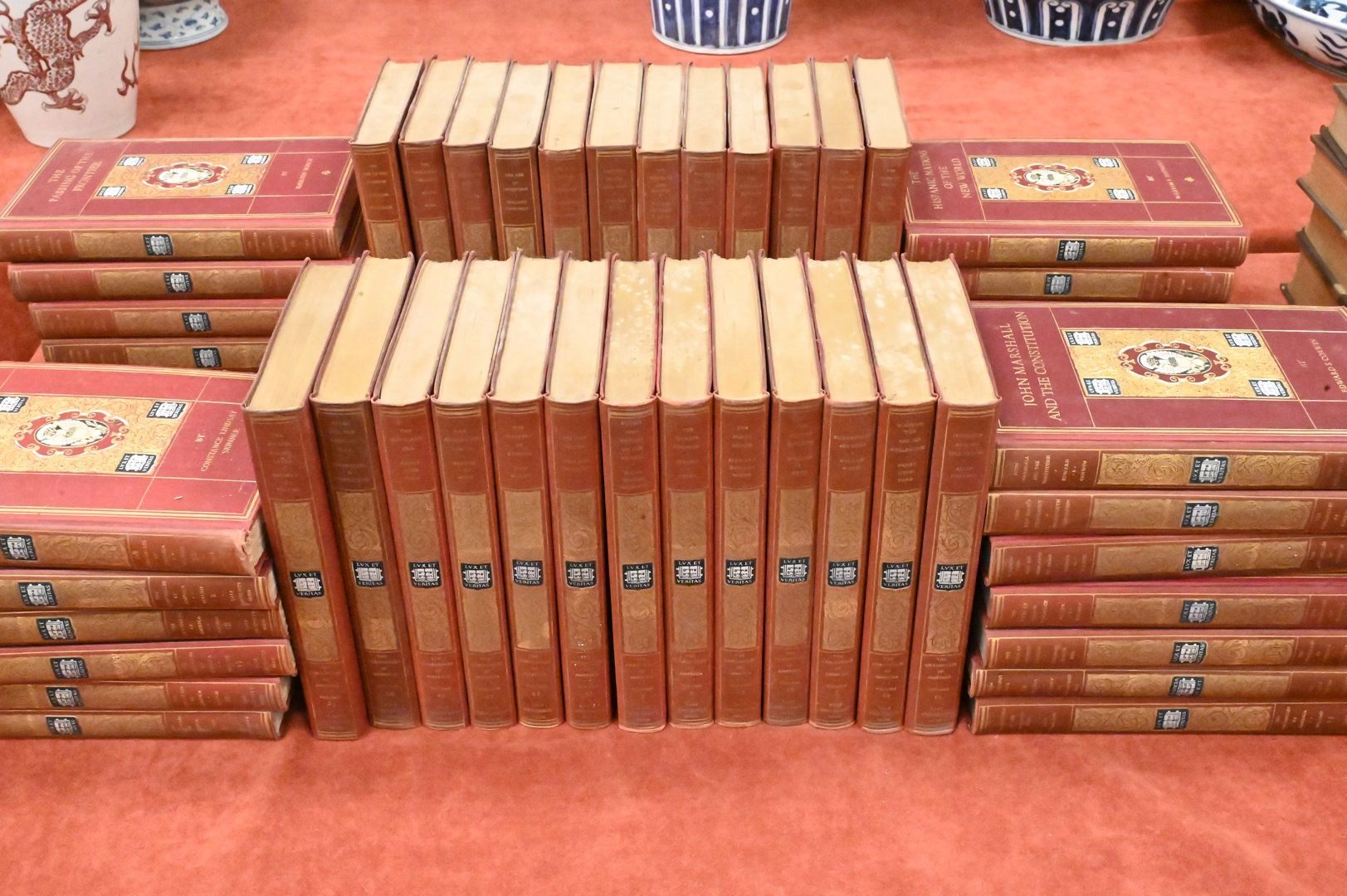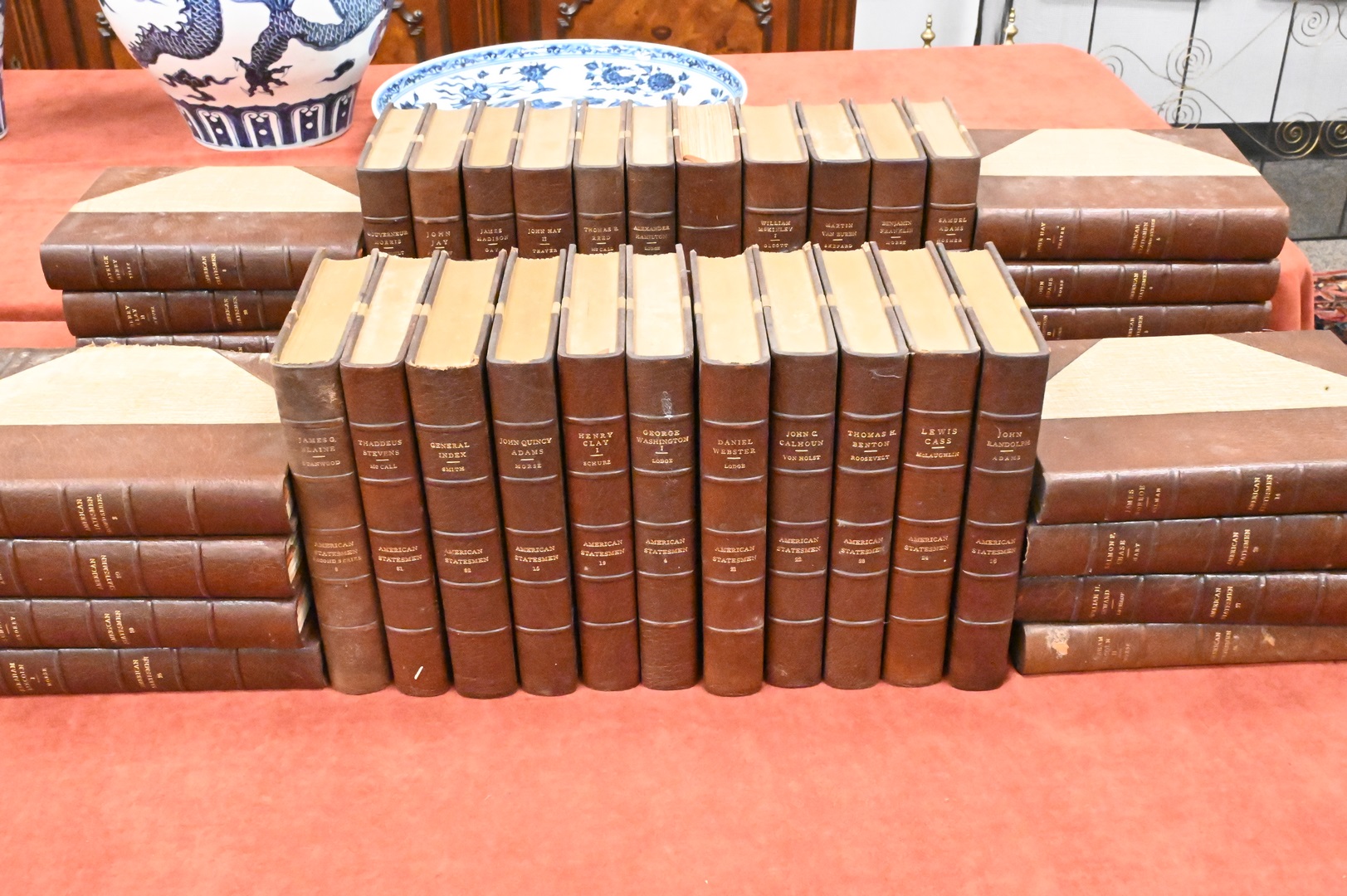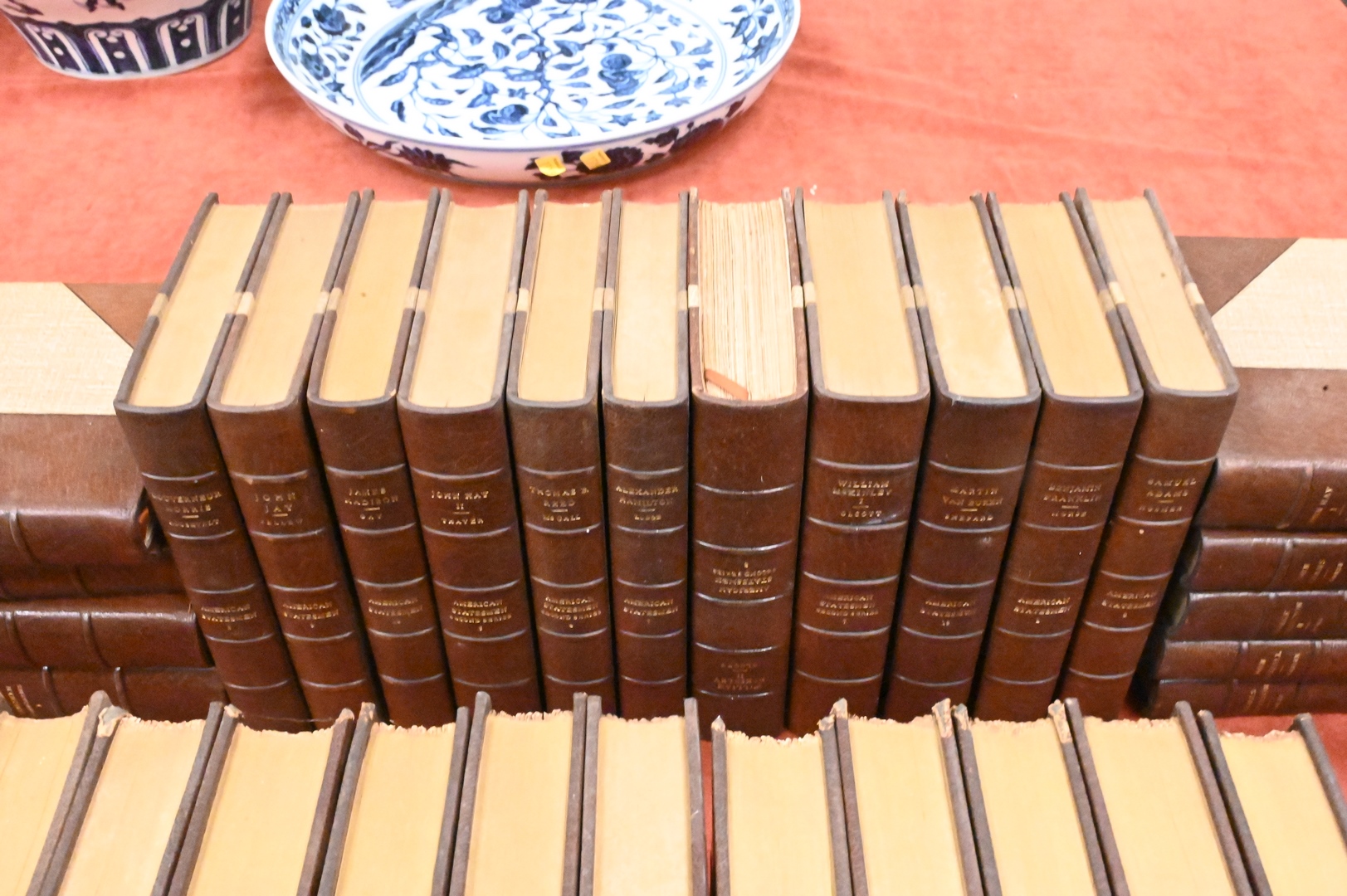 Complete 50 Volume Leatherbound Set of “Chronicles of America” Abraham Lincoln Edition, printed in 1919, along with set of 39 American Statesman leather bound books published 1989, Provenance: Estate of Cyril H. Moore Jr, Kent, Connecticut.