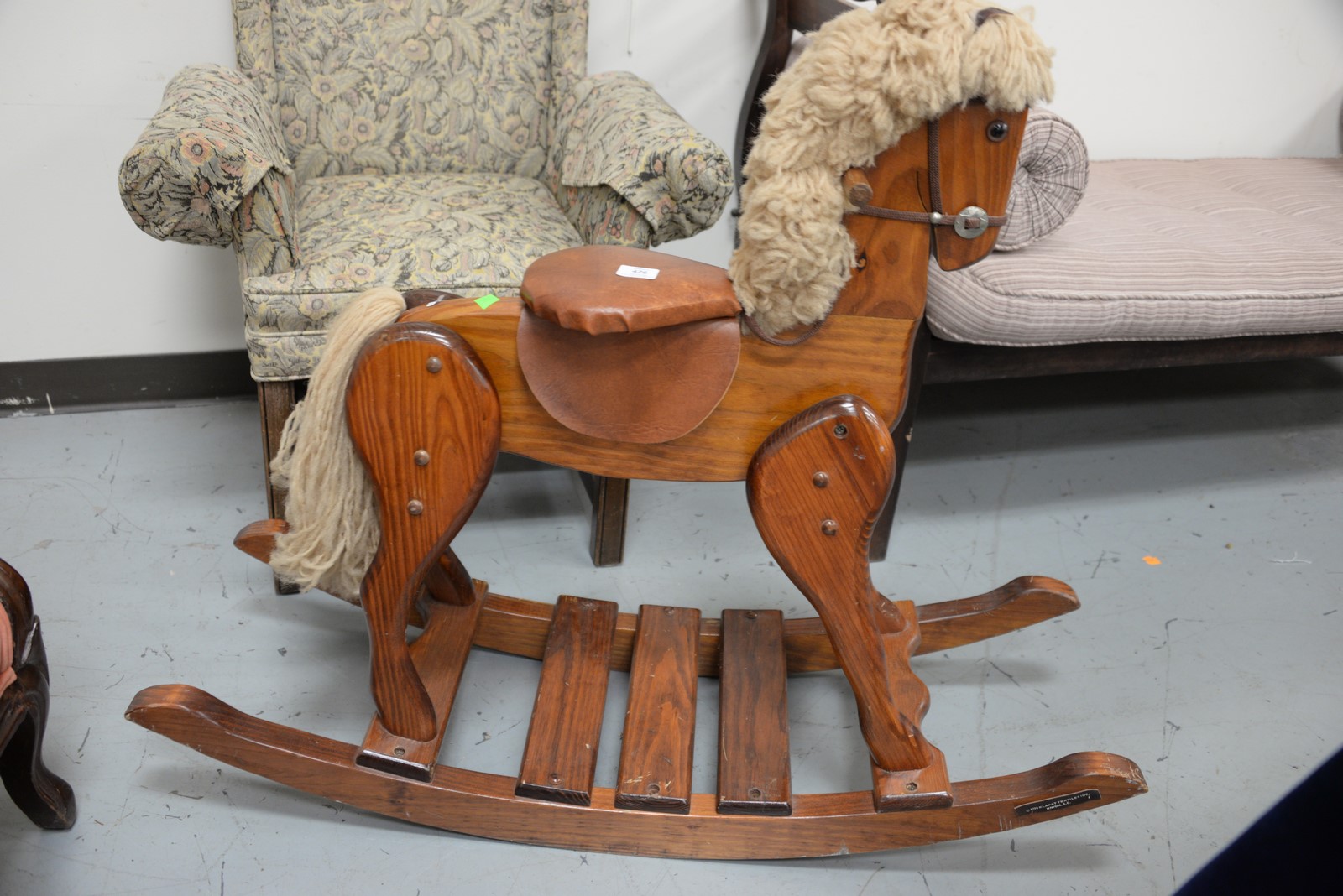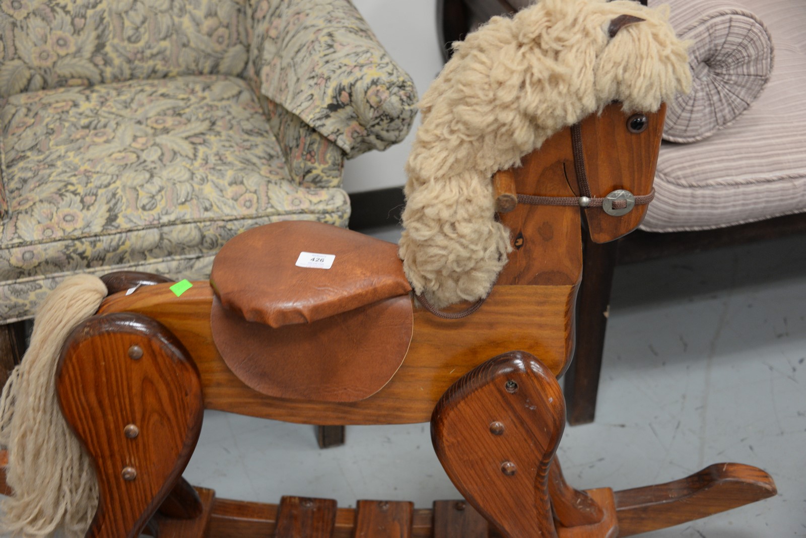 Lot 426: Custom pine rocking horse.lg. 43 in.