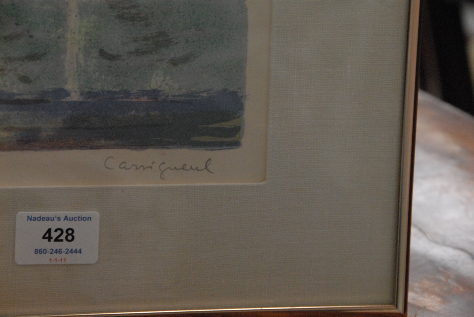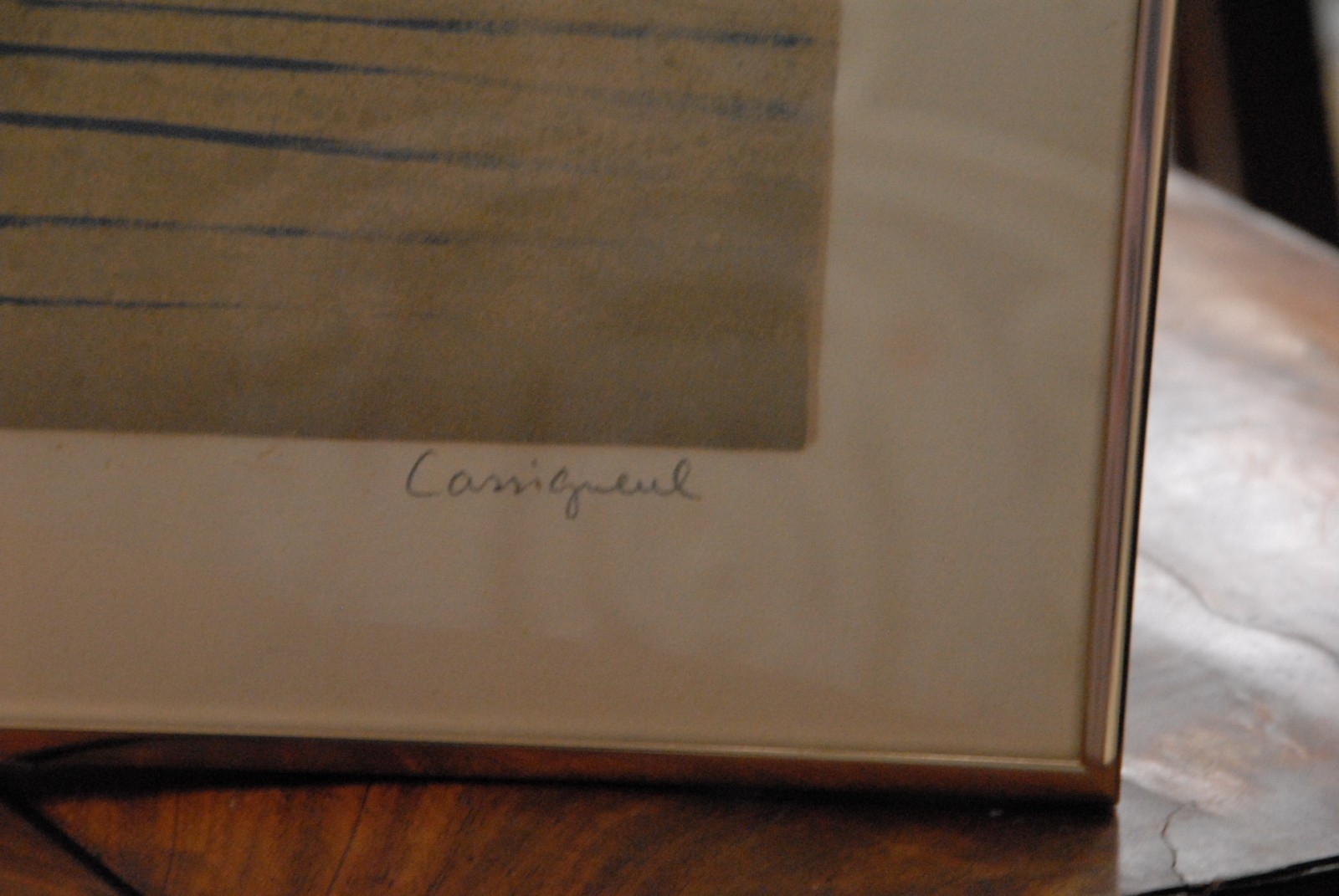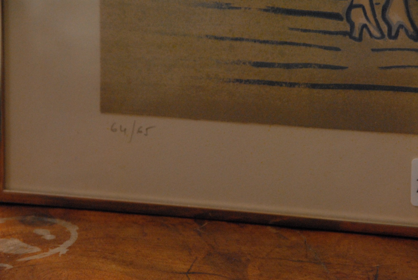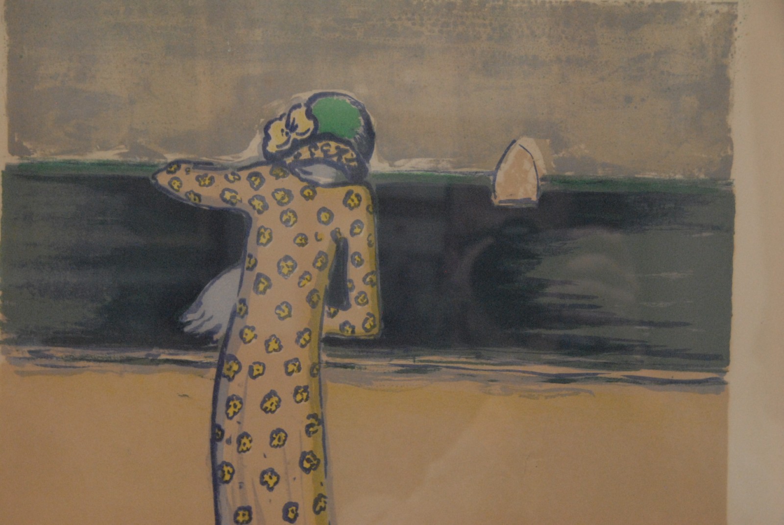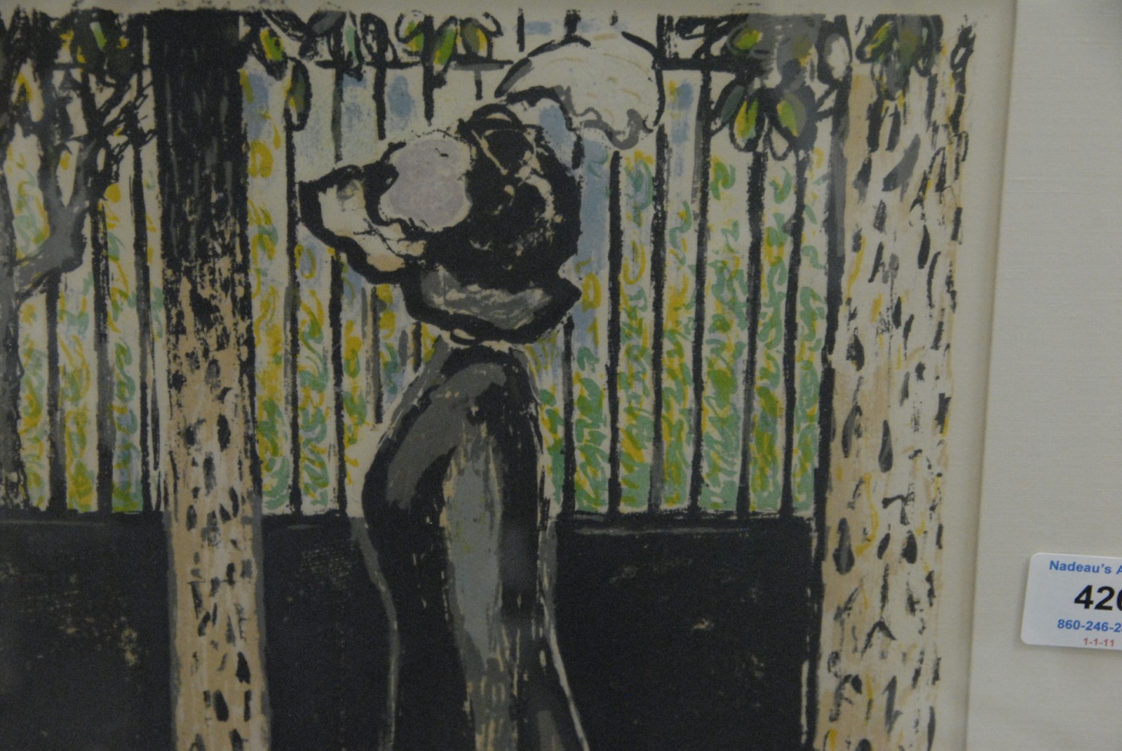 Group of three Jean-Pierre Cassigneul b 1935 LADY WITH DOGS colored lithograph signed lower right Cassigneul numbered lower left 74/120, DEVANT LA MER LES PROMENEUSES colored lithograph signed lower right Cassigneul numbered lower left 64/65 and LES PROMENEUSES SUR LE PONT colored lithograph signed lower right Cassigneul numbered lower left 60/65.