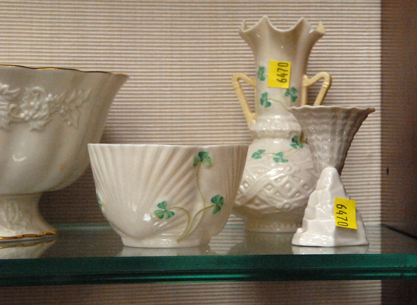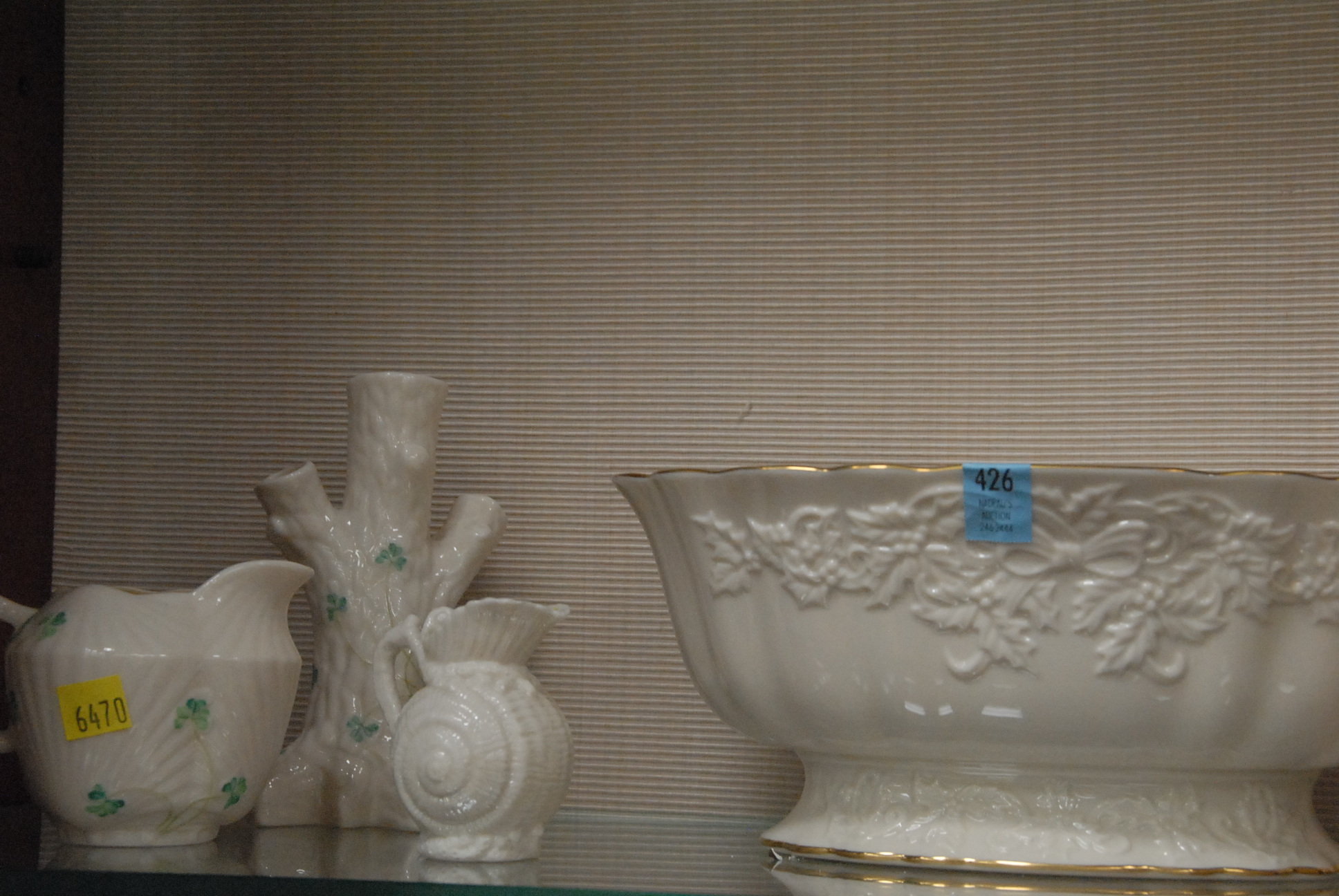 Lot 426: Grouping of Belleek and Lenox to include 6 pieces of Belleek and a Lenox bowl.