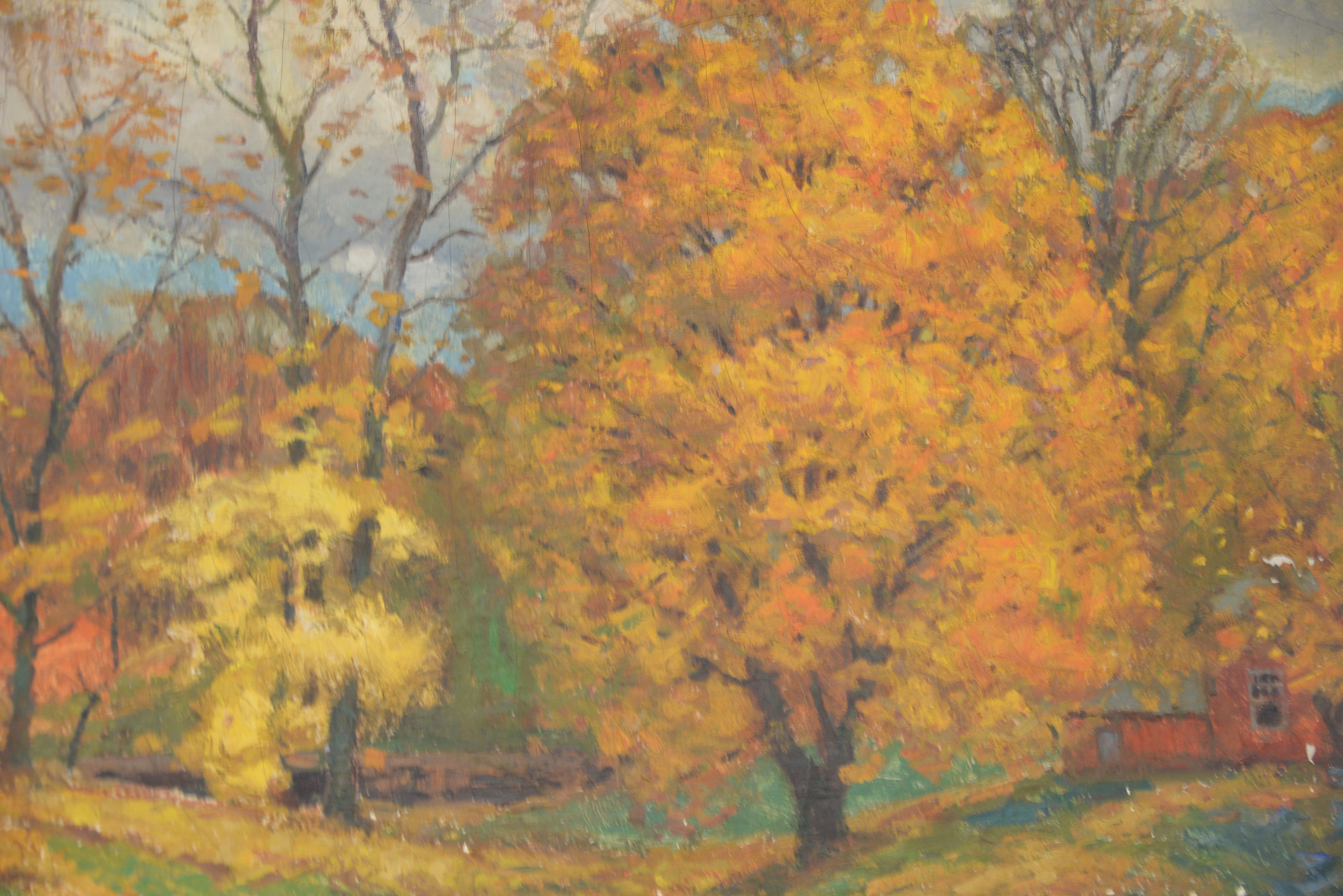Oil on canvas fall landscape, unsigned, 28 x 34.
