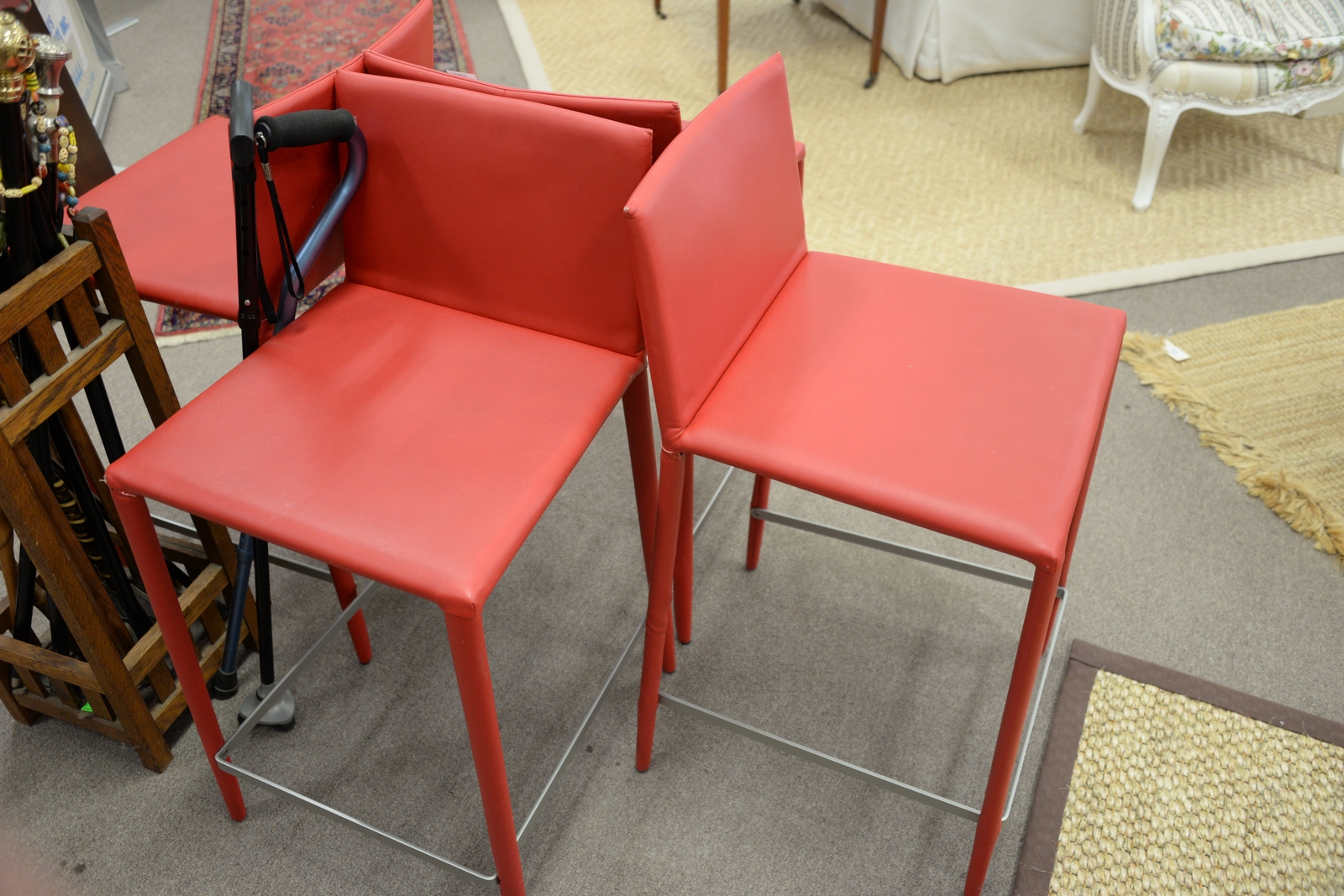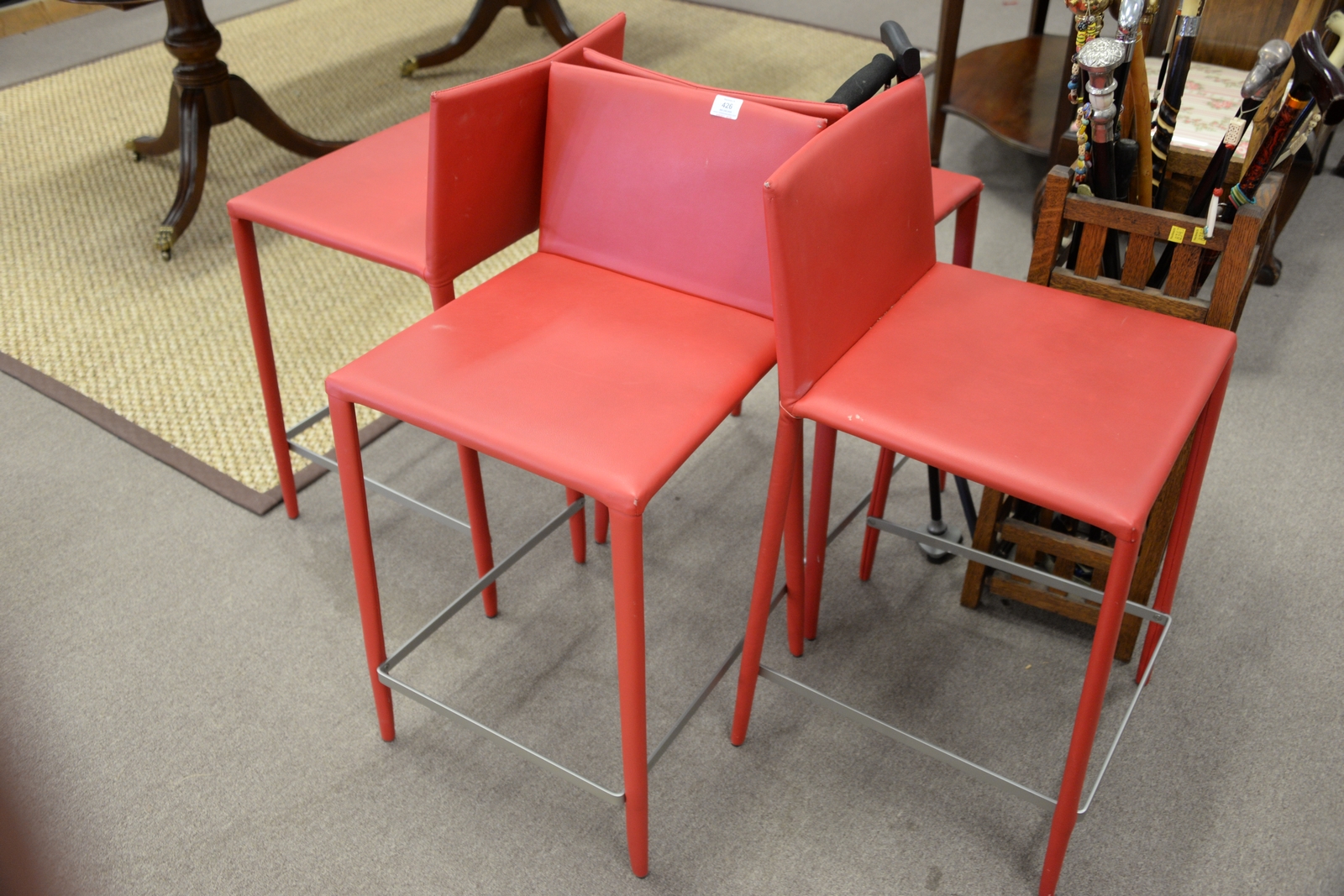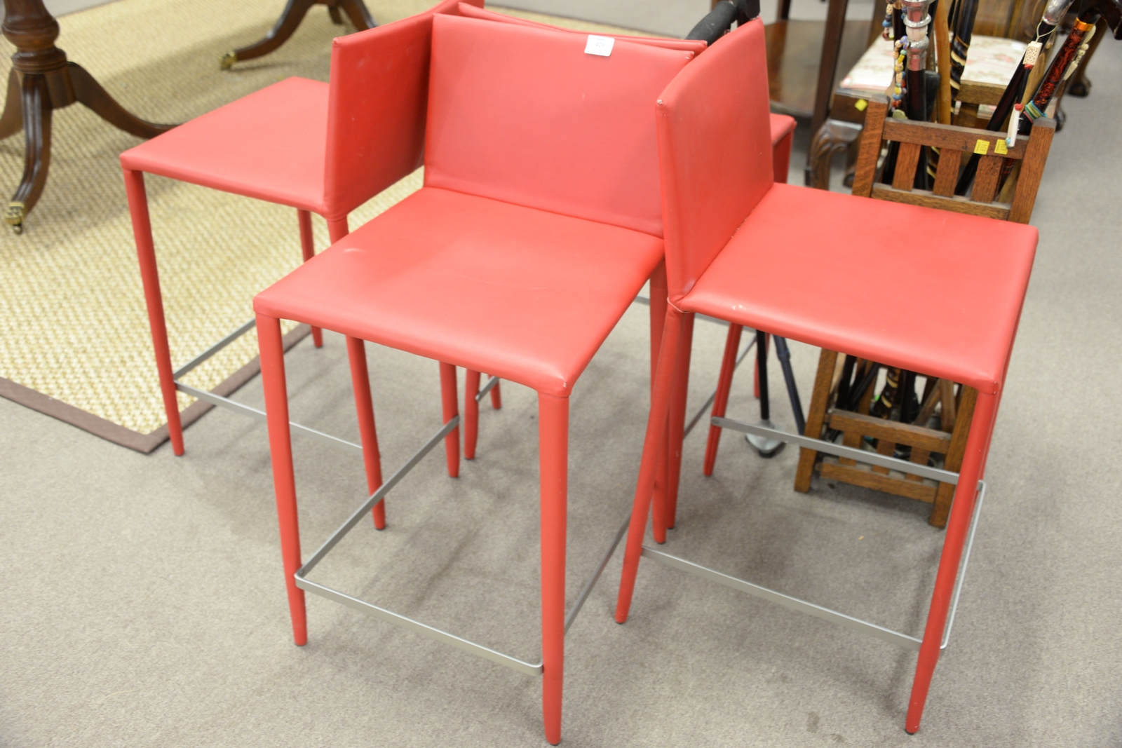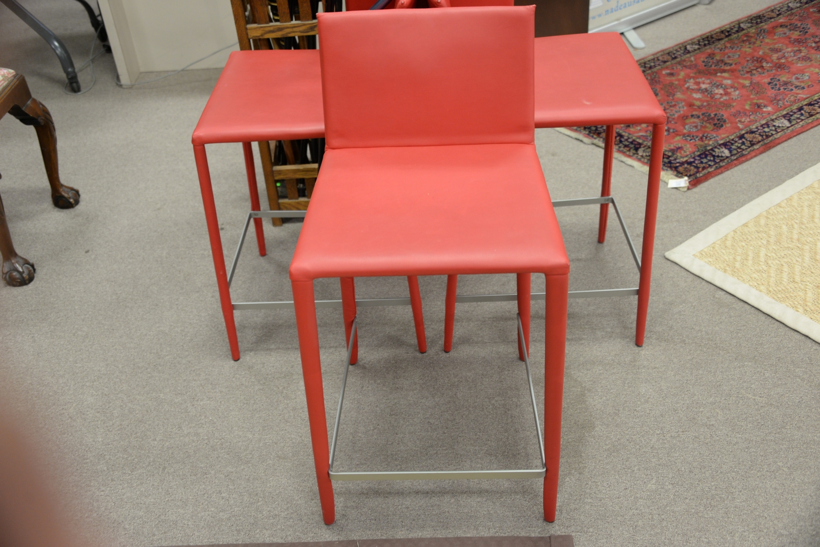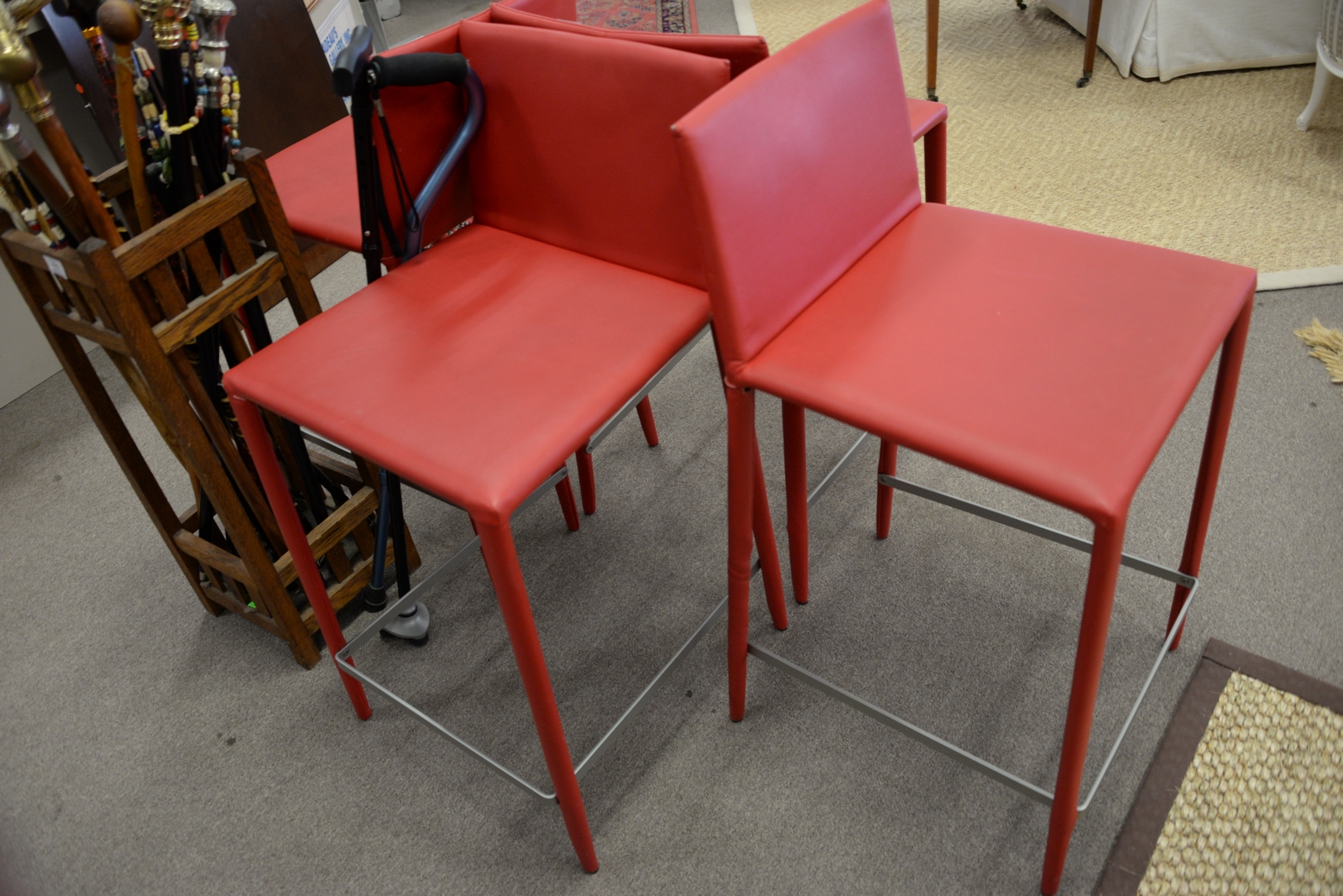 Set of four Arper bright red leather bar/counter stools with backs. seat ht. 25in.