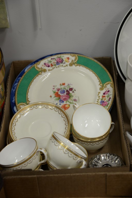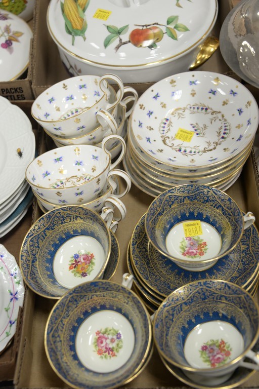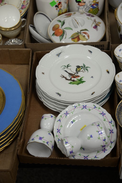 Six box lots of china plates, cups, saucers, six Limoges plates, two Royal Worcester dishes, Raynaud Limoges, etc.