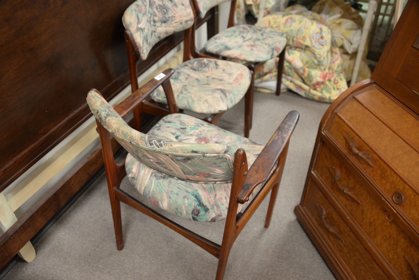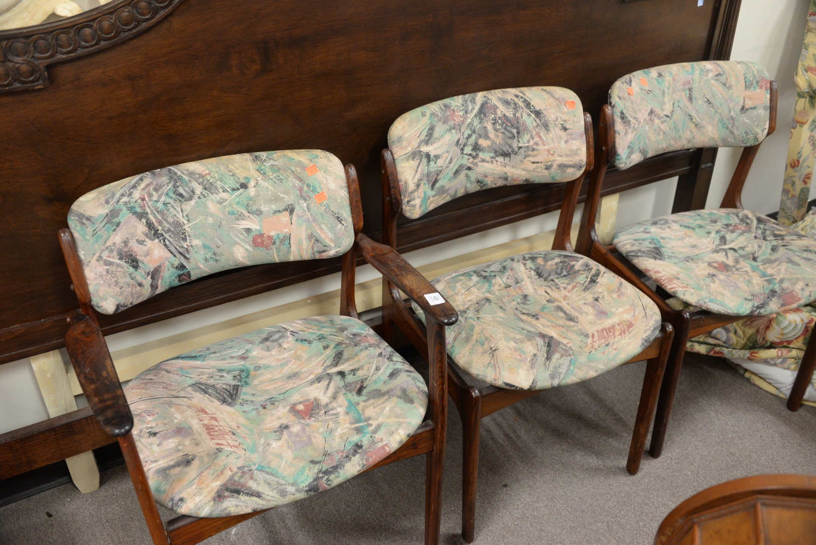 Lot 426: Three Benny Linden Rosewood Dining Chairs, height 31 inches.