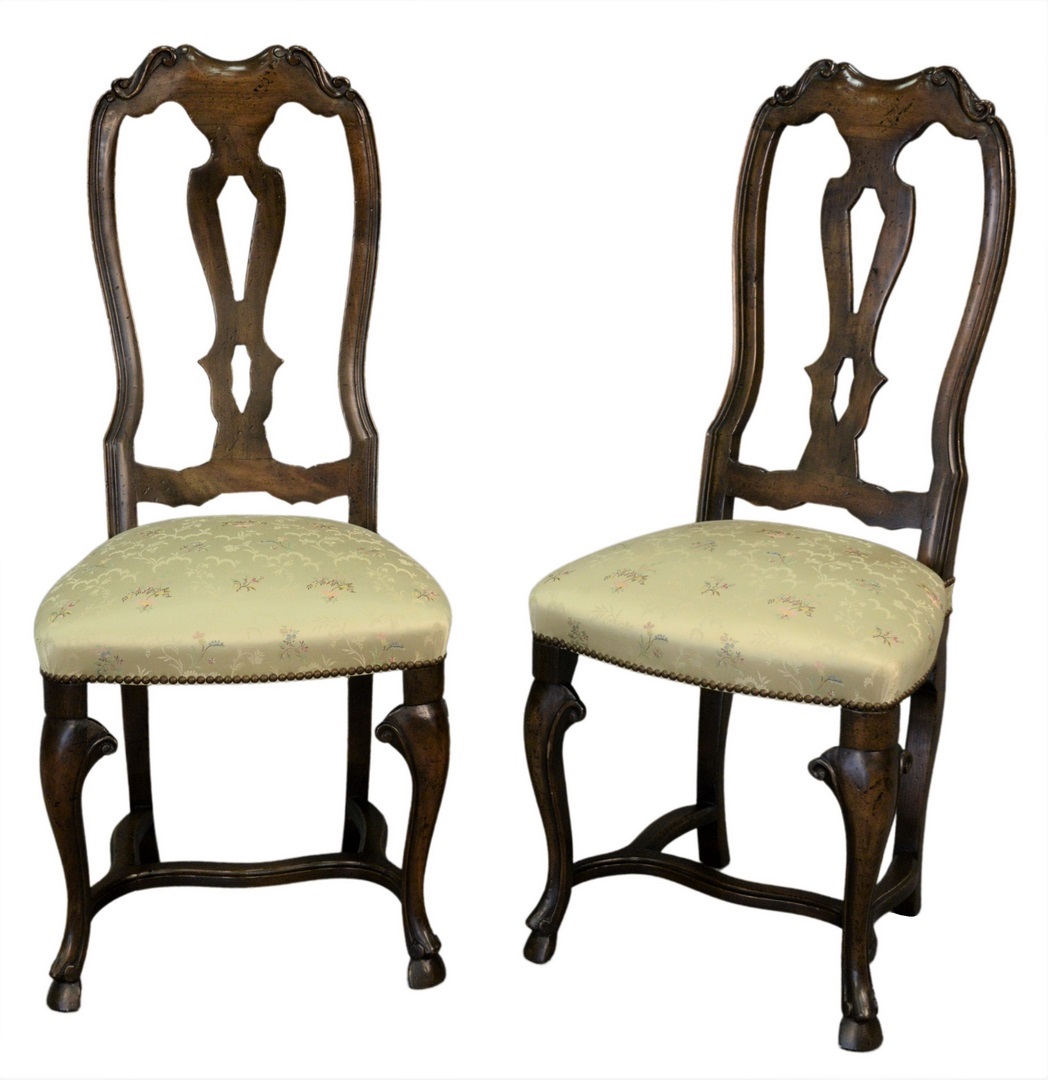 Lot 427: Auffray & Company Set of Ten Louis XV Style Dining Chairs, to include two arm, eight side, having custom upholstery, seat height 17 1/2 inches.