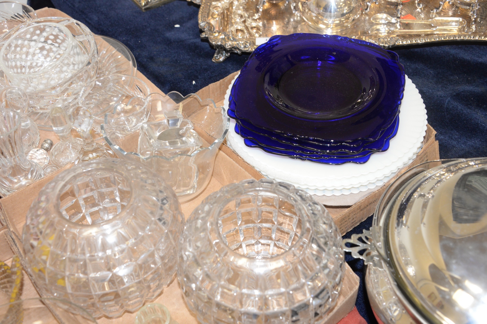 Lot 427: Five Tray Lots of Crystal and Glass, to include Val Saint Lambert Rosenthal cut glass a pink glass flowered bowl along with a pai…
