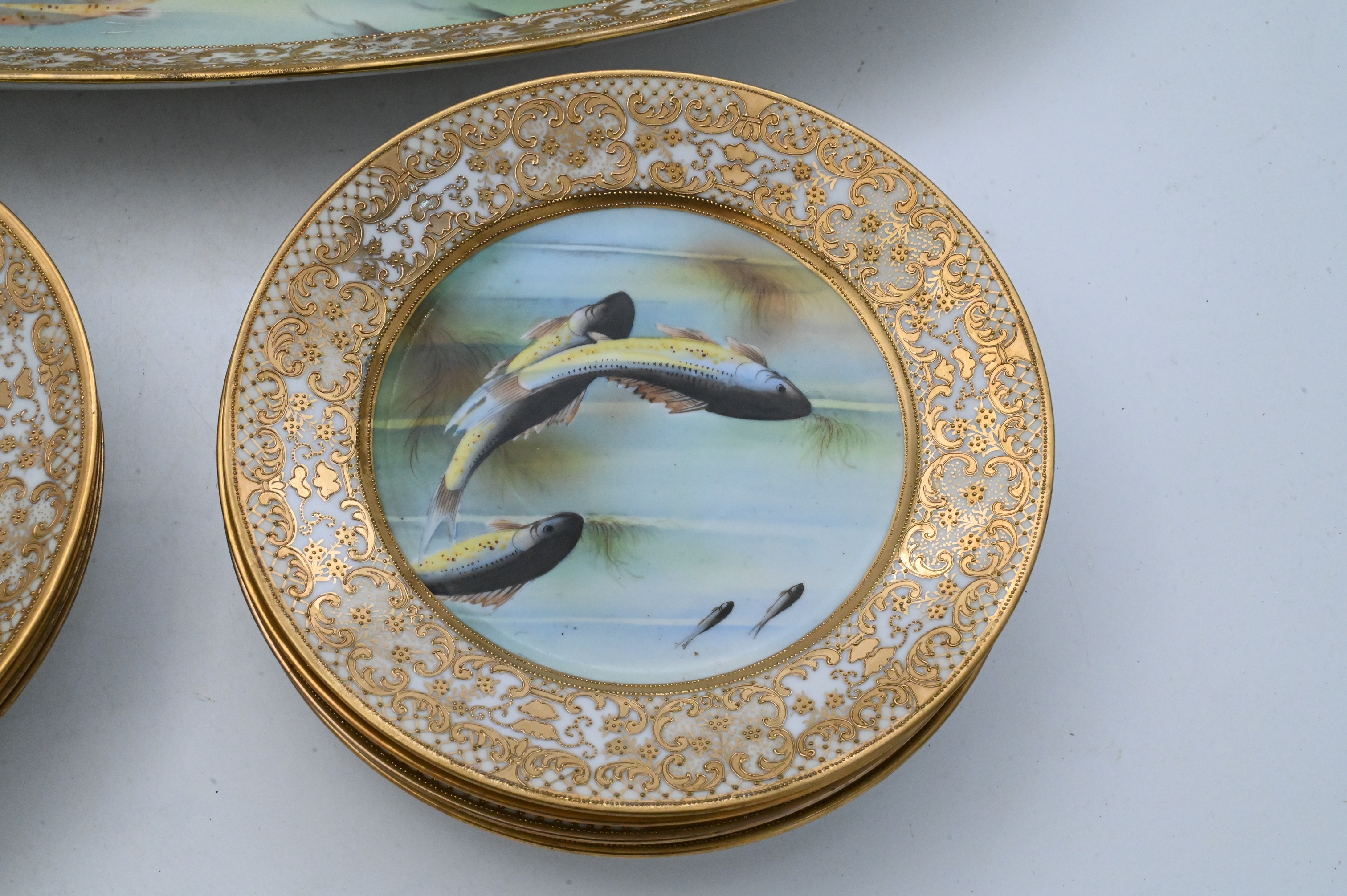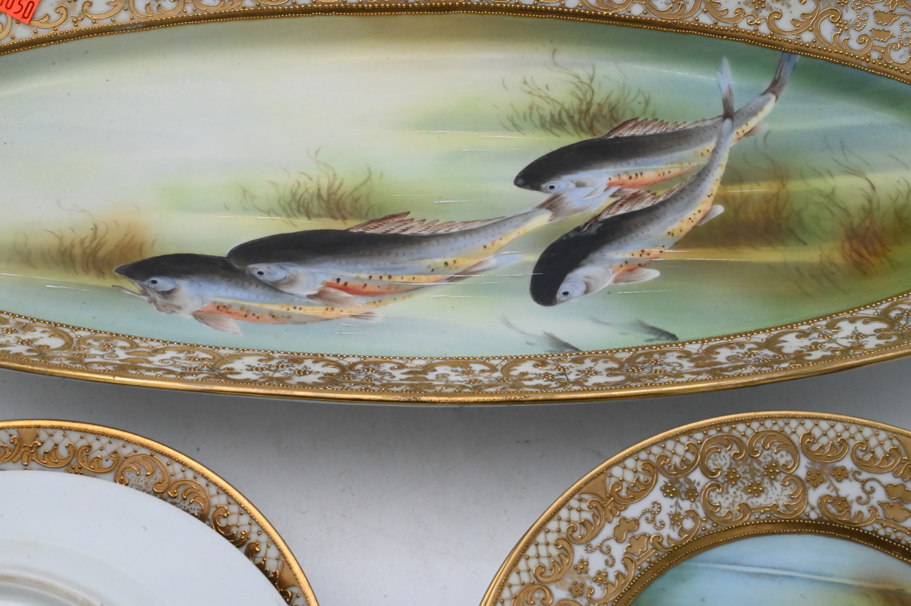 Nine Piece Hand Painted Nippon Porcelain Fish Service to include