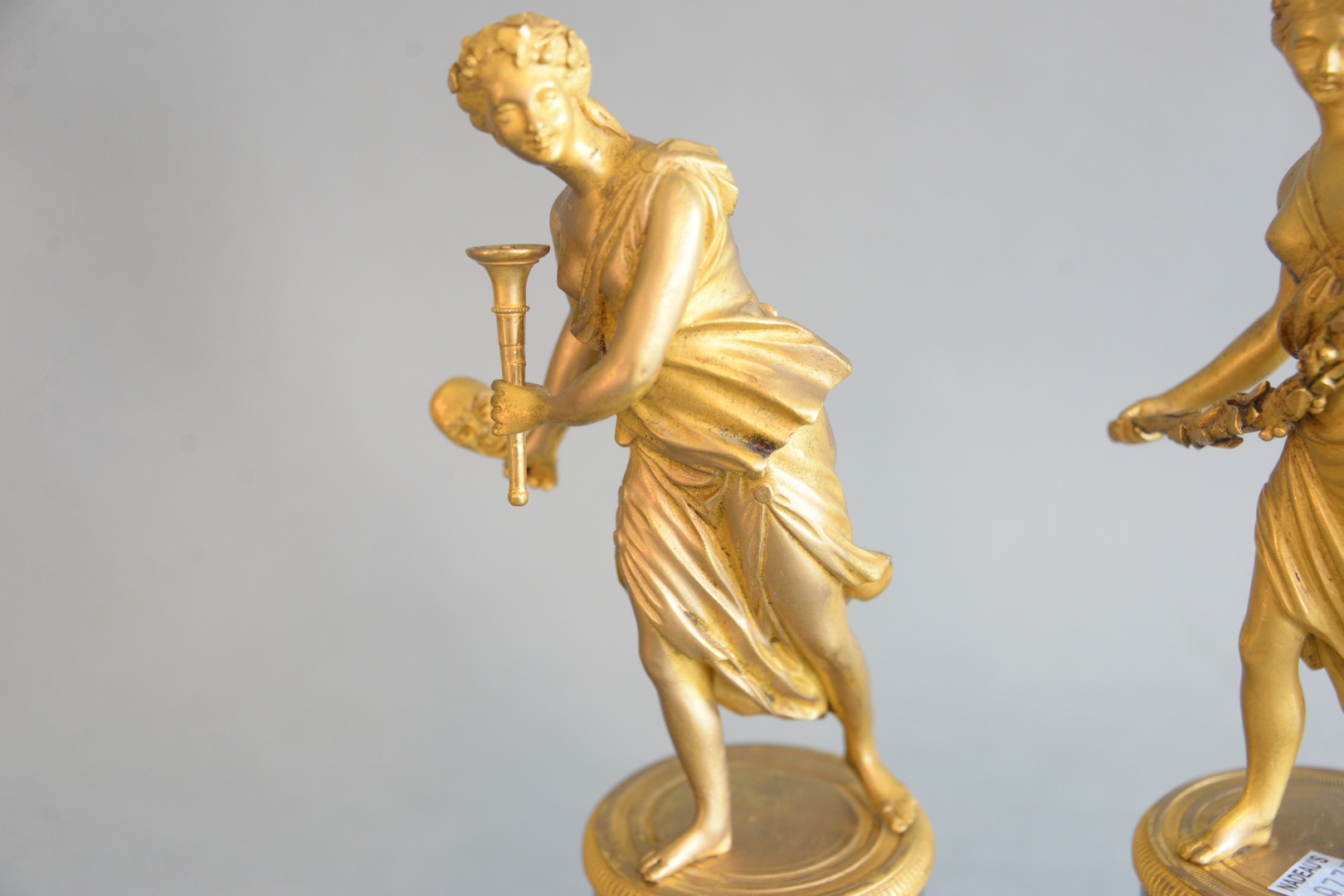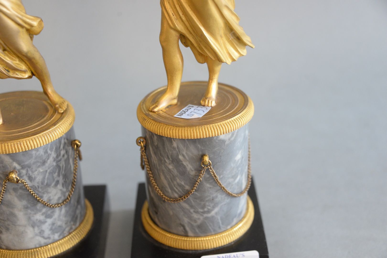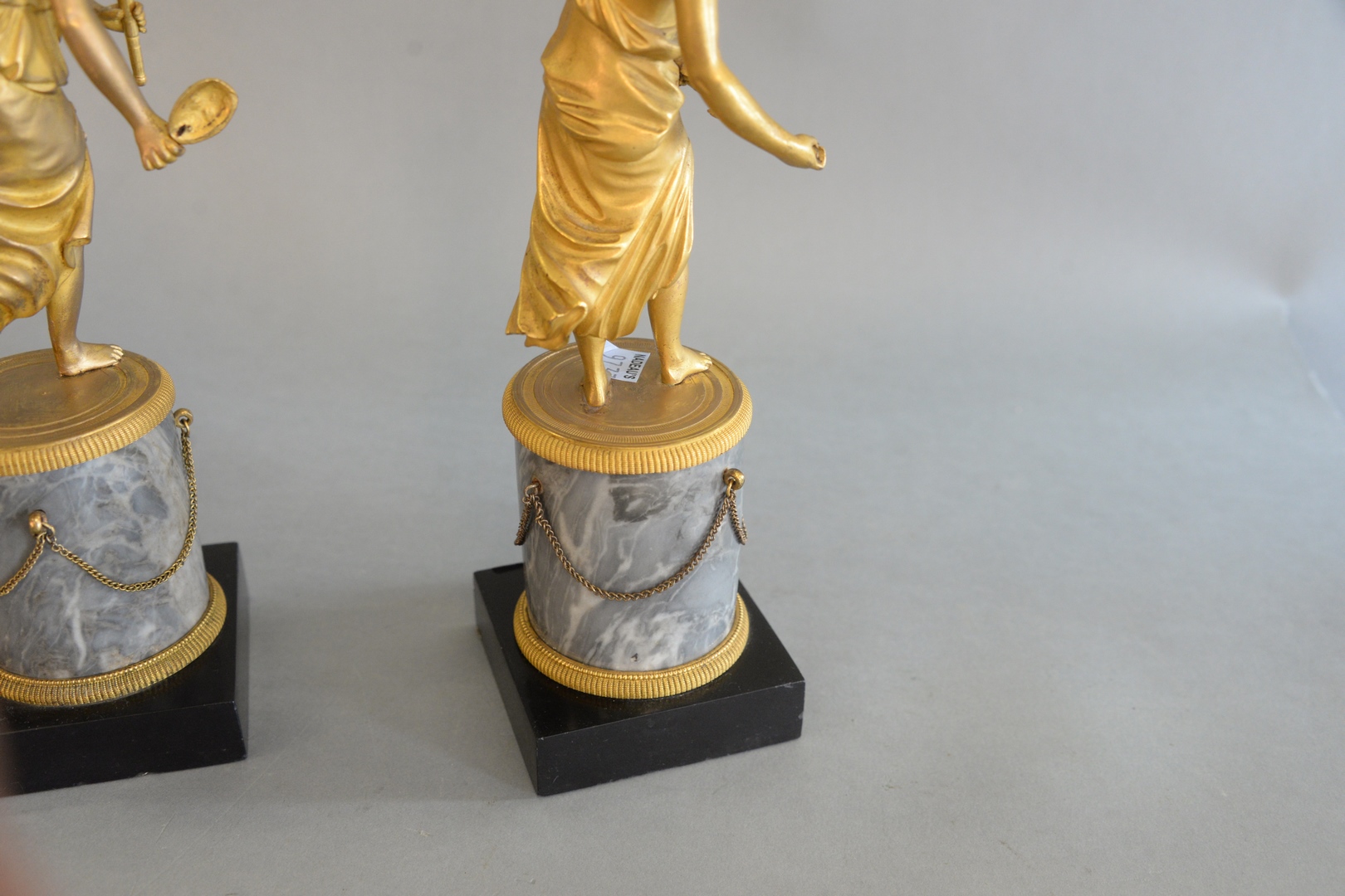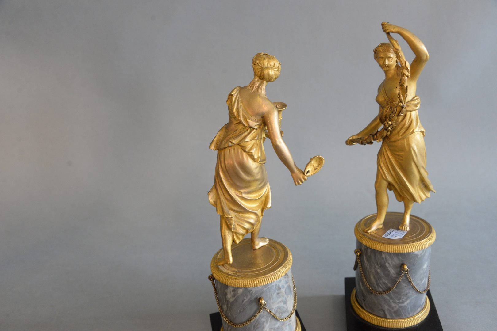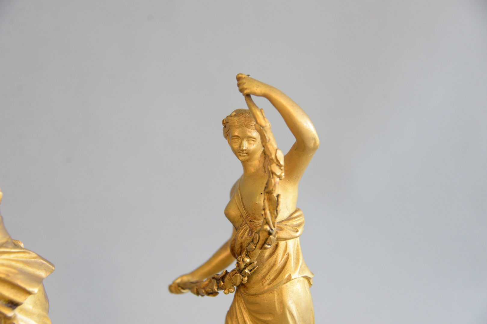 Lot 427: Pair Gilt Bronze Classical Figures on grey marble, set on black slate base height 12 inches