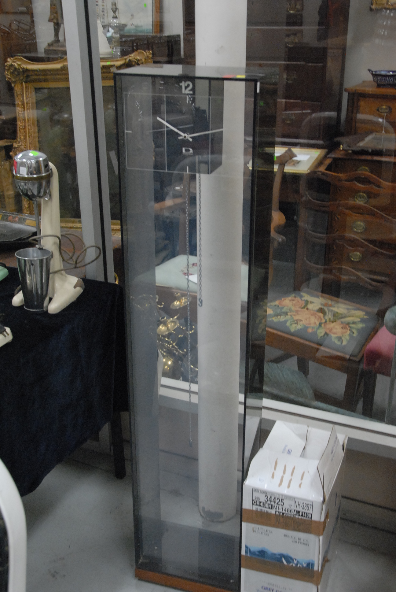 Plexiglass Mid-Century Design Group tall case clock.