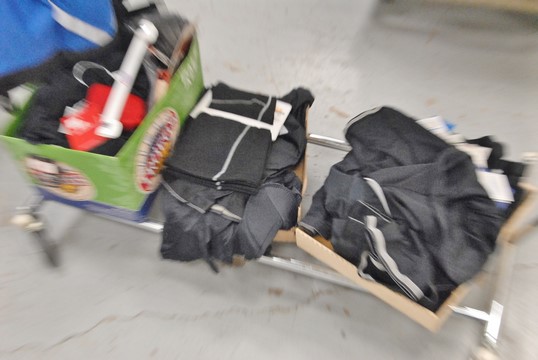 Rack of clothing to include approx. 30 stretch shorts, wind breaker and misc. approx. retail value 900.00