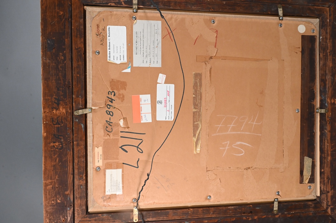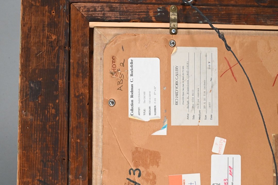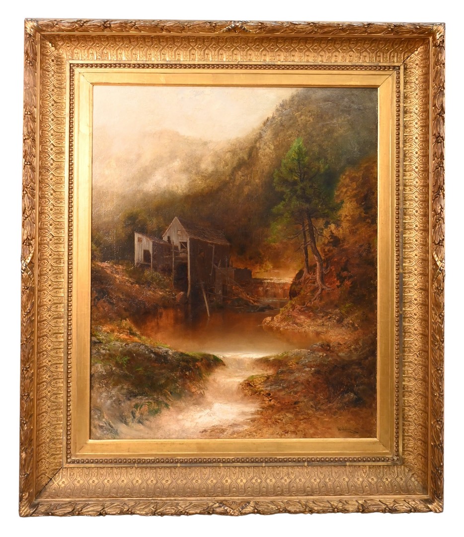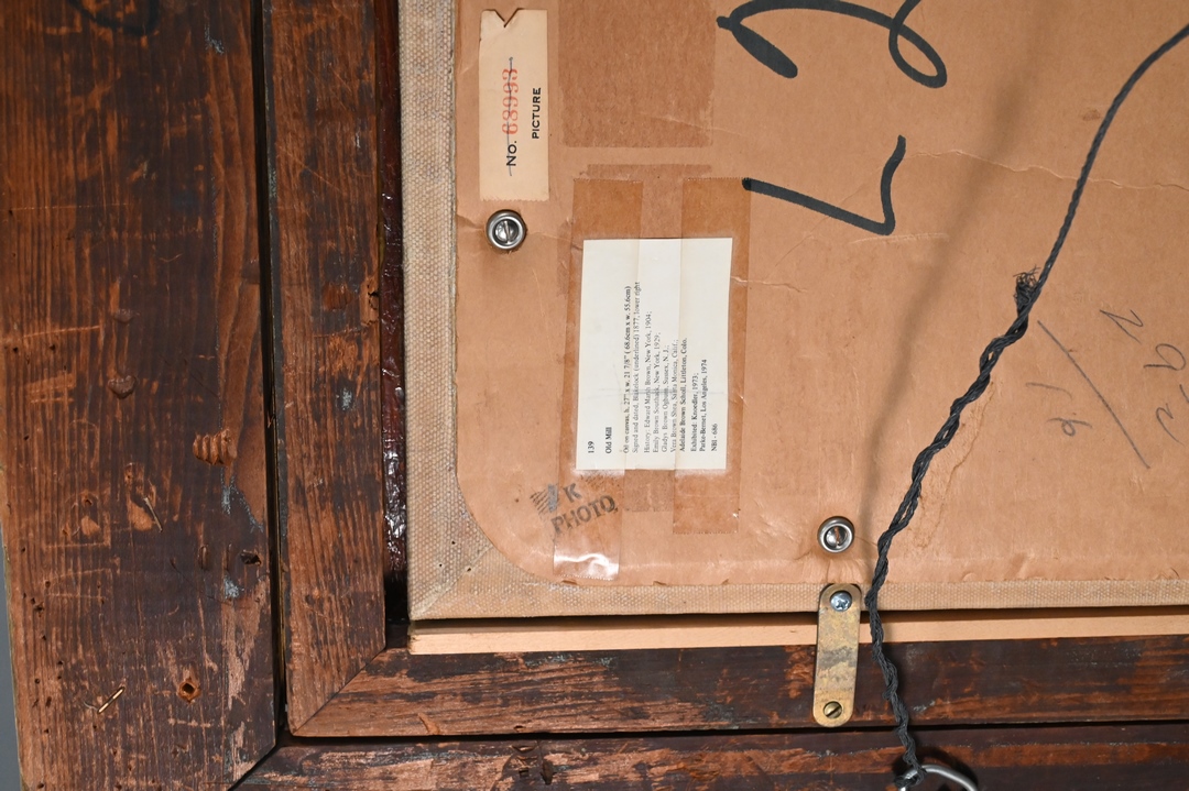Provenance: Two letters from University of Nebraska signed by Norman A. Geske 1976 and 1981 establishing the painting of The Old Mill as number 686 in the inventory category II, Edward Marsh Brown, New York 1904, Emily Brown Southack, New York 1929, Gladys Brown Ogburn, Sussex New Jersey, Vera Brown Shea, Santa Monica California, Adelaide Brown Scholl, Littleton Colorado, Exhibited: Knoedler 1973, Parke-Bernet Los Angeles 1974, Richard York Gallery Label on back to present owner