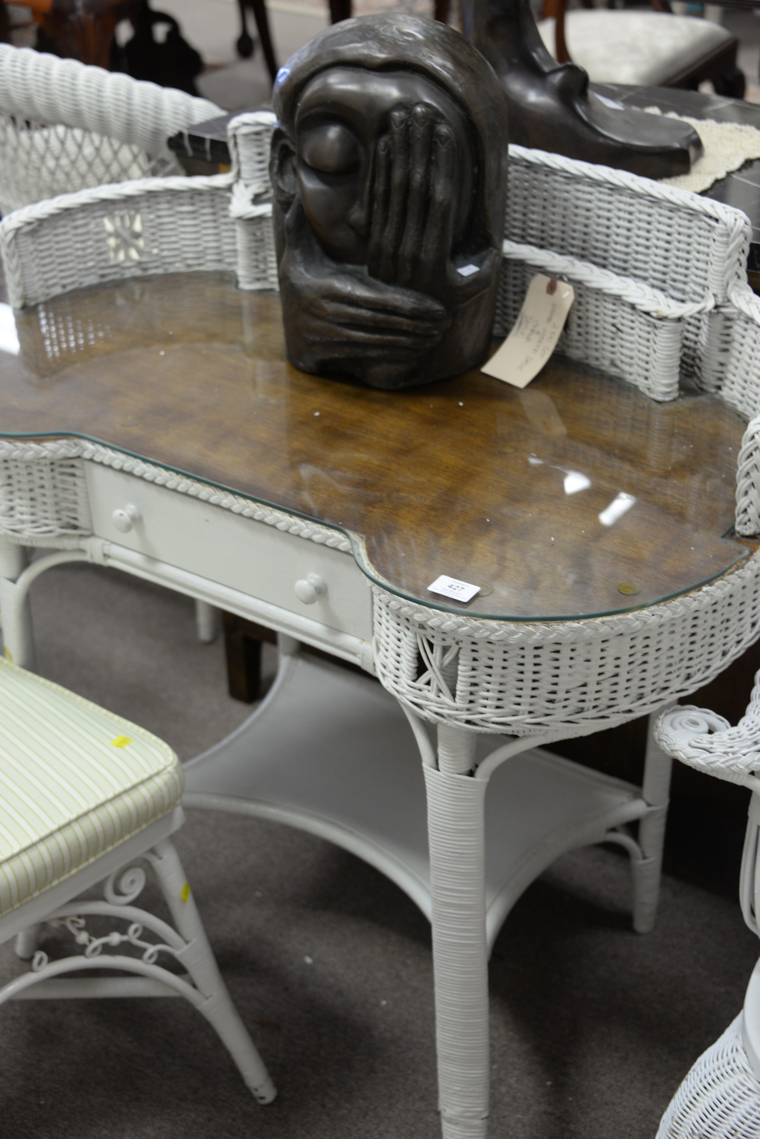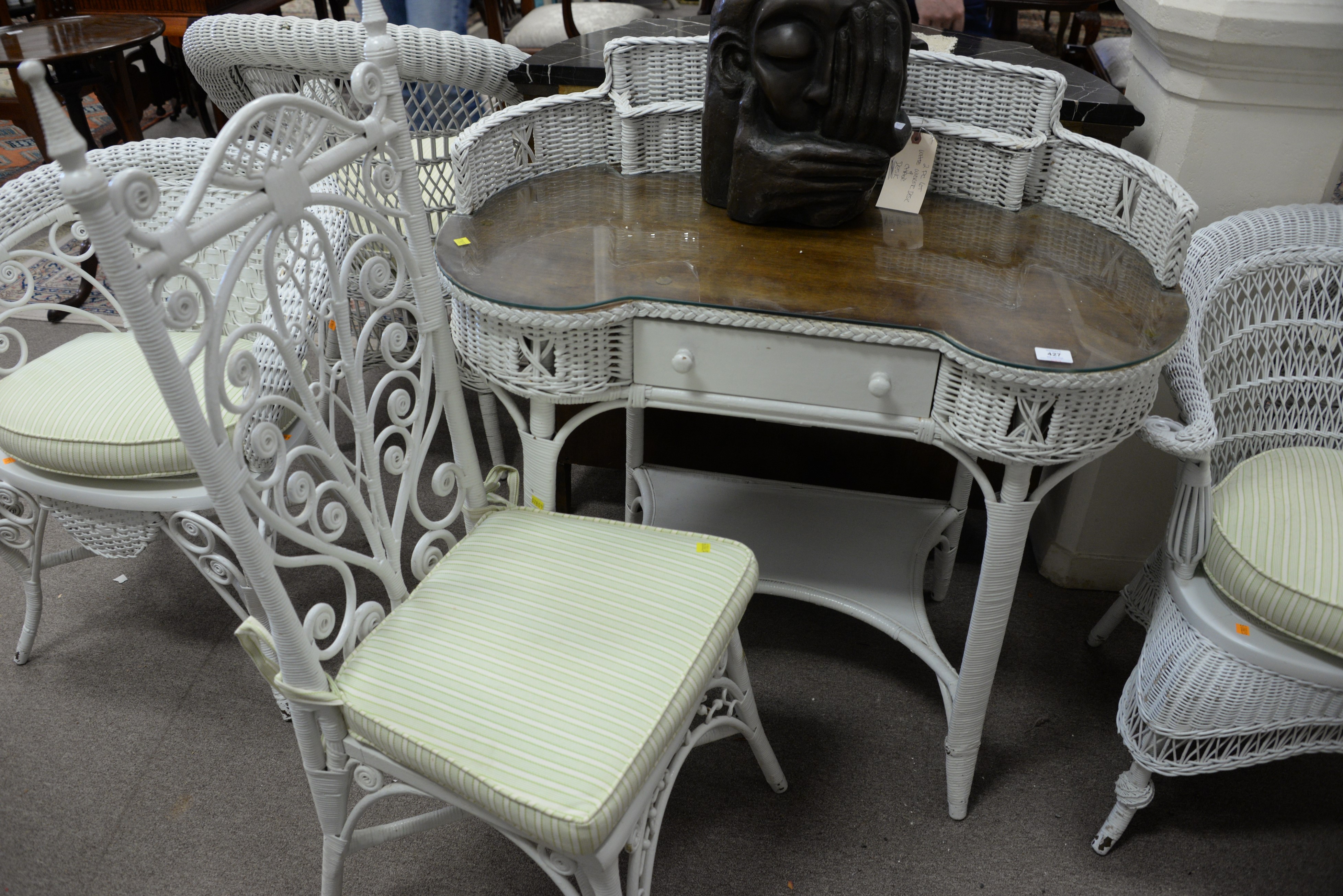 Wicker kidney desk and chair, wd. 38.