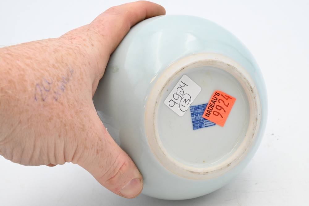 Lot 428: Pale Blue Glazed Double Gourd Vase blue seal mark on bottom height 8 inches