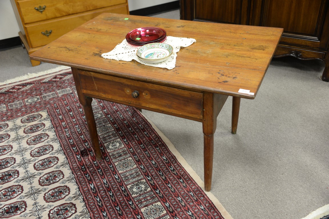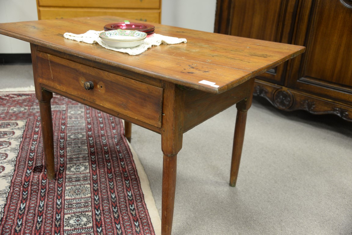 Queen Anne walnut work table, 18th century, probably P.A., ht. 20in., top: 26 x 41.