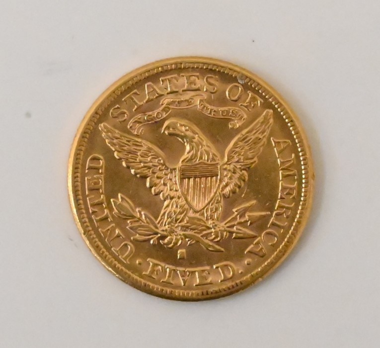 Two Five Dollar Gold Coins, to include 1880-S five dollar gold Liberty AU, along with a 1897 five dollar gold Liberty XF